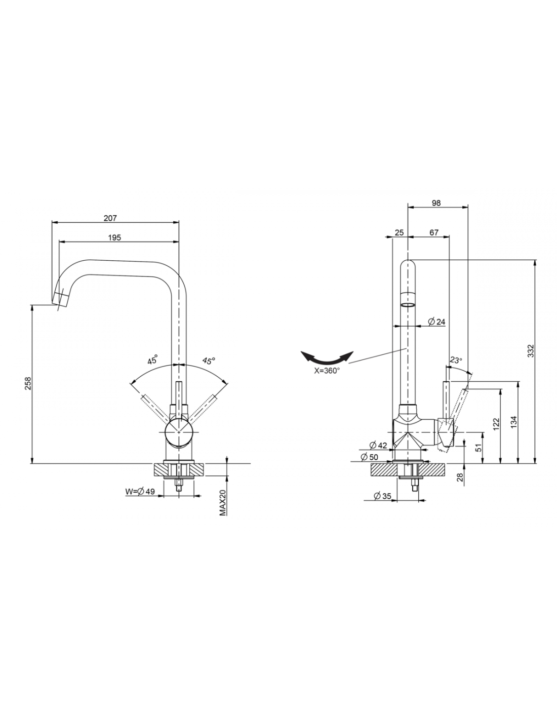 | Distanza tra foro di fissaggio e diffusore acqua | 19,5 cm |