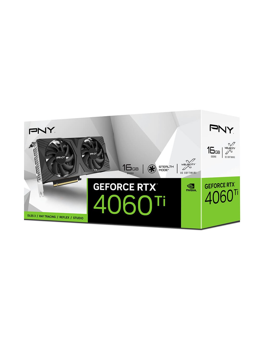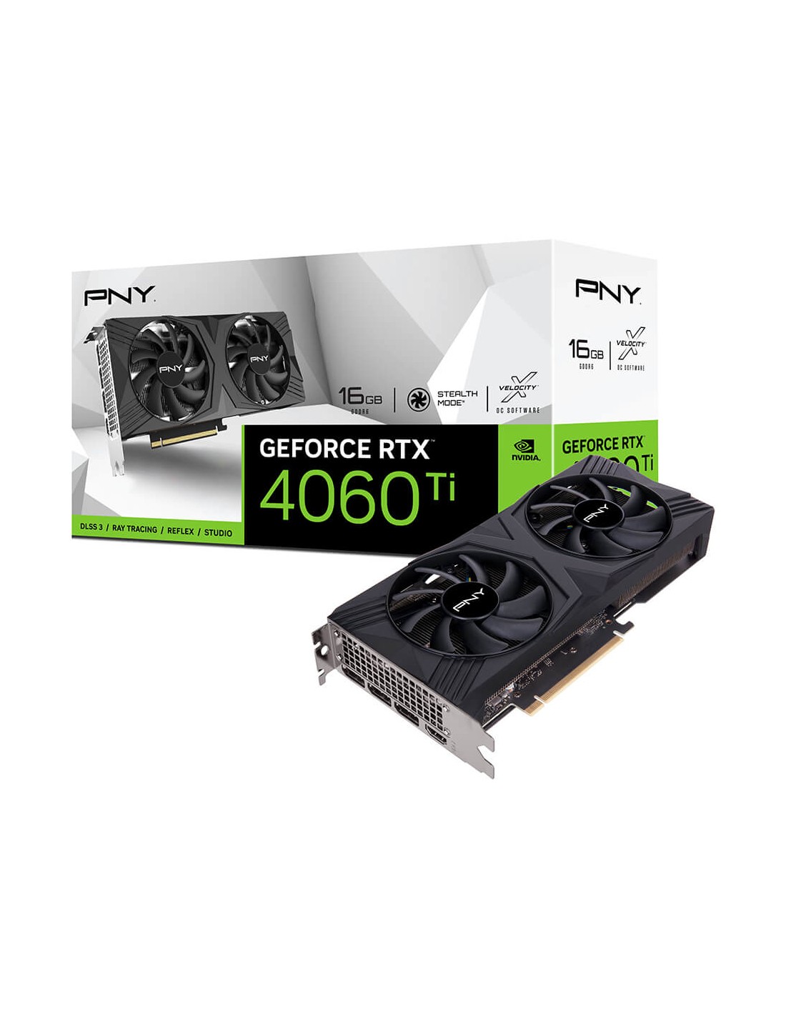 PNY VCG4060T16DFXPB1. Processore grafico / fornitore: NVIDIA, Processore grafico: GeForce RTX 4060 Ti, Frequenza del processore: 2310 MHz. Memoria Grafica Dedicata: 16 GB, Tipo memoria adattatore grafico: GDDR6, Ampiezza dati: 128 bit. Risoluzione massima: 7680 x 4320 Pixel. Versione DirectX: 12 Ultimate, Versione OpenGL: 4.6. Tipo interfaccia: PCI Express x16 3.0. Tipo di raffreddamento: Attivo, Numero di ventole: 2 ventola(e)