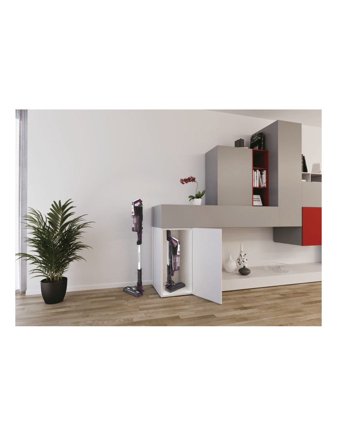 Devi rispondere al telefono durante l'aspirazione? Fatto! H-FREE 500 può essere temporaneamente* parcheggiato in posizione verticale, se necessario, per consentire di gestire comodamente attività rapide. * Quando l'aspirapolvere è in uso e assistito, è possibile parcheggiarlo temporaneamente nella sua posizione verticale. Tuttavia, se viene lasciato incustodito, deve essere riposto sul supporto a parete