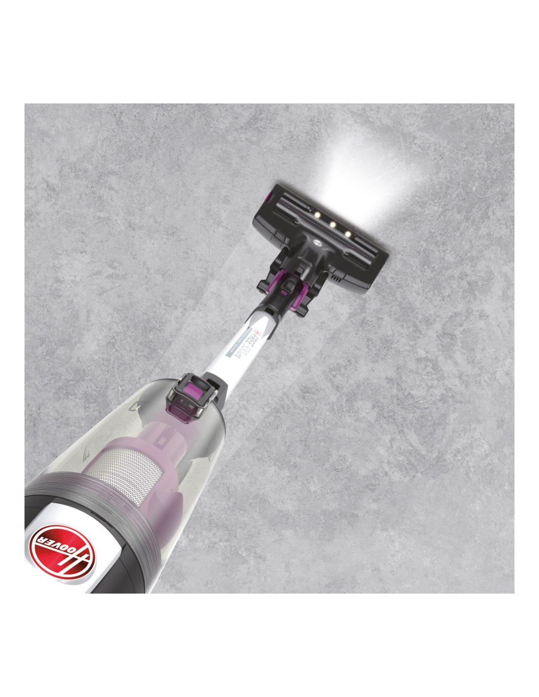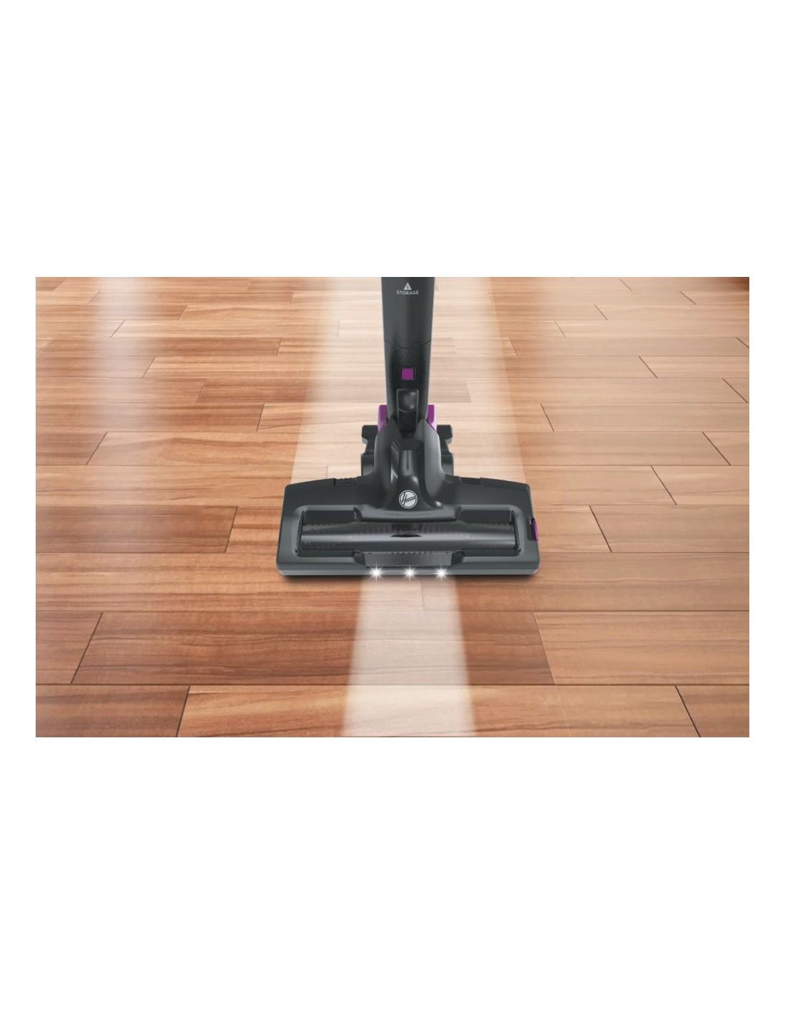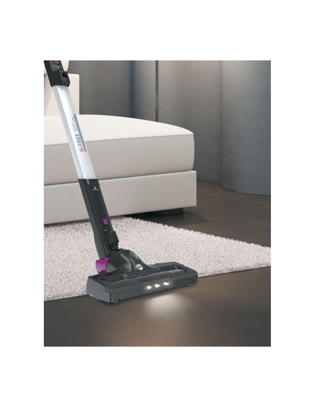 Grande visibilità anche per la polvere più nascosta: i LED frontali sulla spazzola di H-FREE 500 individuano la polvere nascosta anche nelle zone più buie.