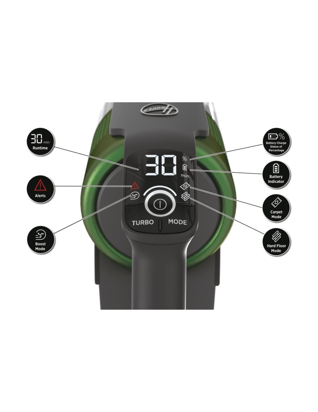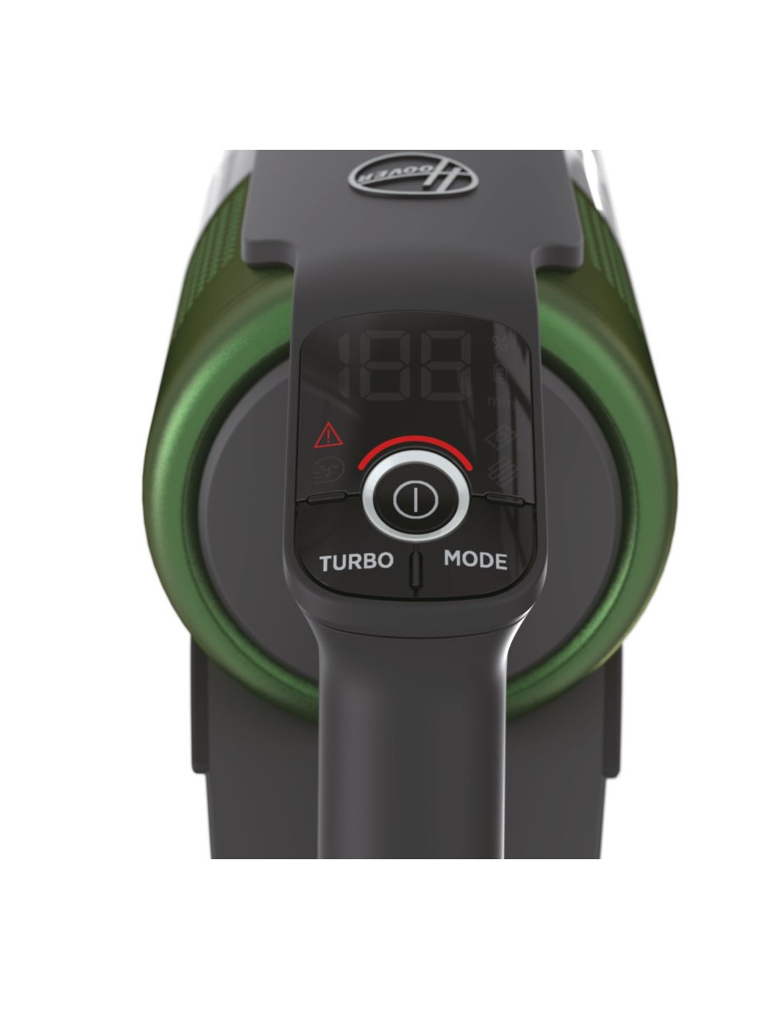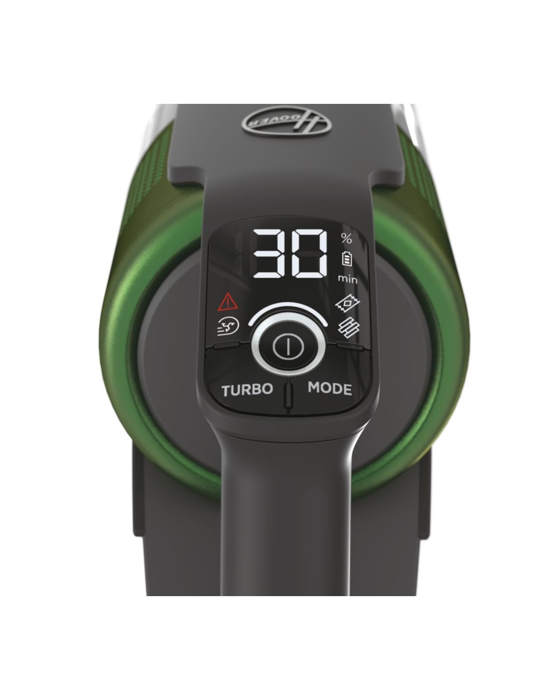 HF9 è dotato di un display LED premium con un pannello di controllo intuitivo per avere tutto ciò di cui hai bisogno a portata di mano, dalle impostazioni della forza aspirante ad eventuali problematiche legate all'autonomia residua per completare le tue pulizie. Puoi facilmente regolare la velocità della spazzola scegliendo tra due impostazioni: modalità pavimento duro o modalità tappeto. Puoi inoltre regolare la potenza extra passando alla modalità Turbo.