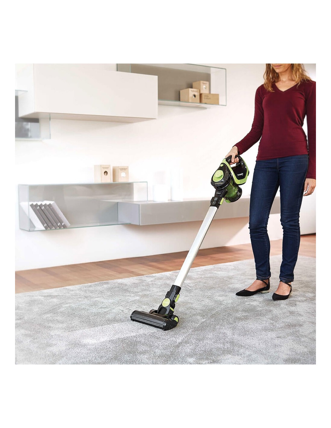 Leggera e maneggevole arriva ovunque; la tecnologia ciclonica e la batteria agli Ioni di Litio da 21.9 Volt garantiscono elevate prestazioni ed un'autonomia fino a 50 minuti, rendendo possibili lunghe sessioni di pulizia senza interruzioni.