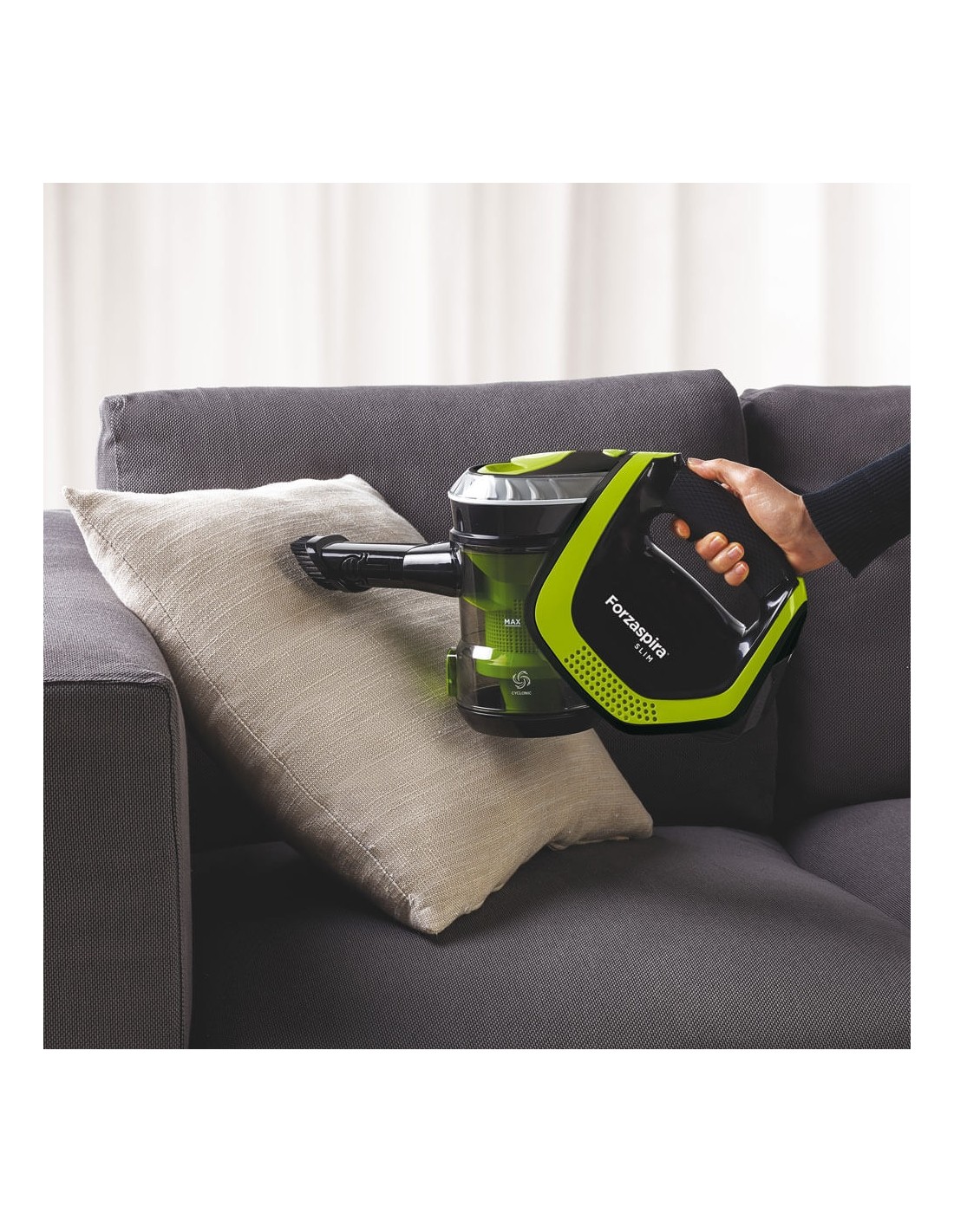 Massima libertà di movimento con Forzaspira SLIM SR110: senza filo, leggera e versatile permette di pulire efficacemente pavimenti e tappeti ma anche mobili, piccole superfici e perfino soffitti. In pochi semplici gesti si può trasformare da scopa elettrica a pulitore portatile, per le piccole pulizie, oppure in aspirapolvere con prolunga per pulire anche i punti più lontani come soffitti o mensole alte.