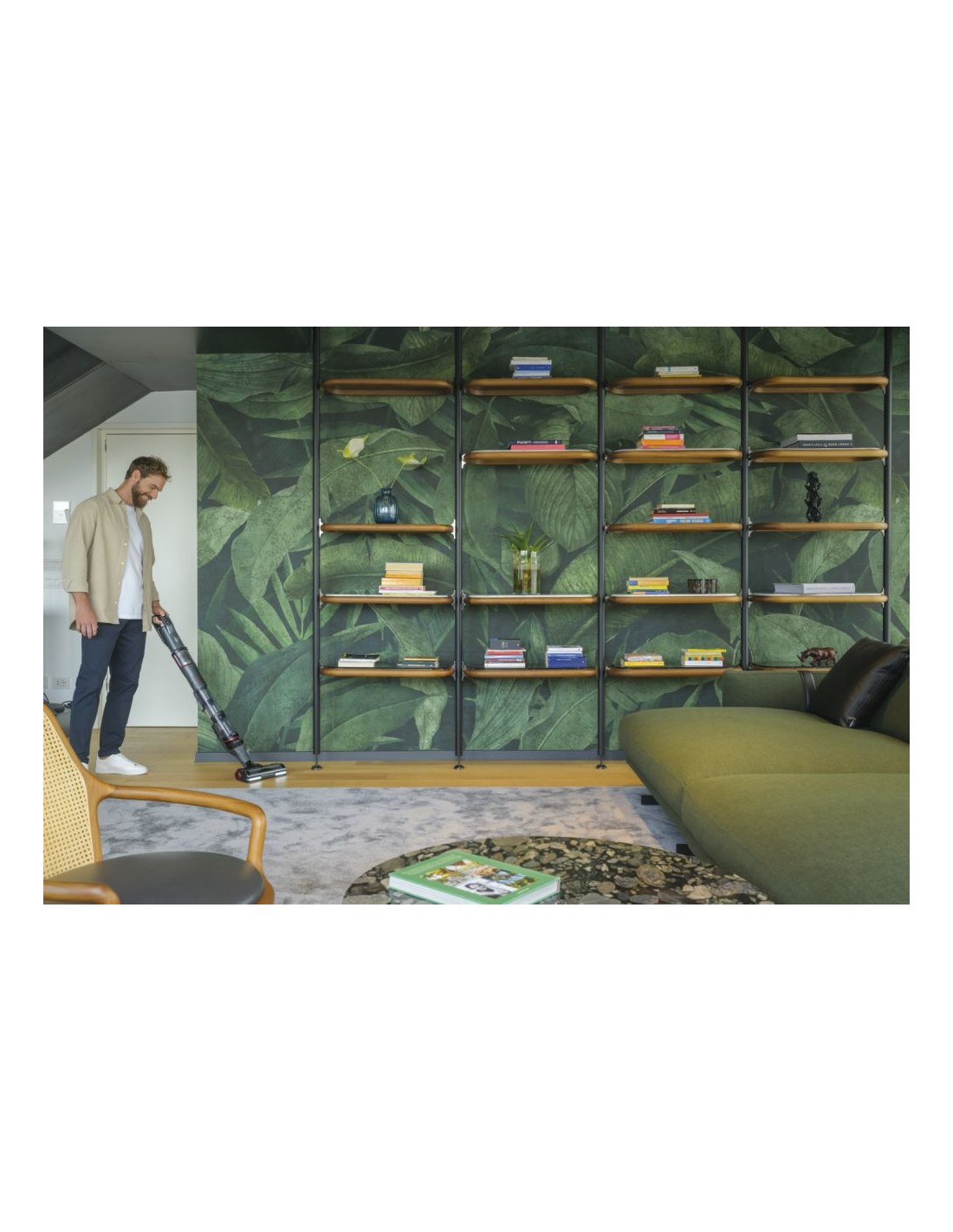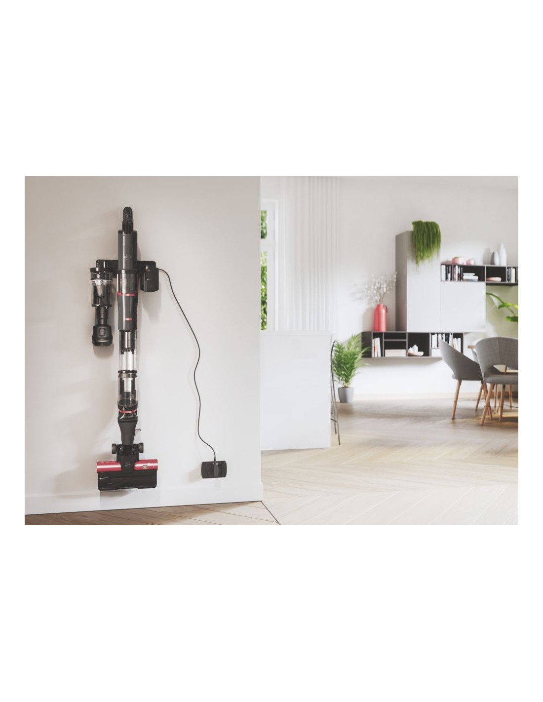 Posiziona il tuo HFX a seconda delle tue necessità: durante l'uso parcheggialo in posizione verticale*, dopo l'uso appendilo al supporto a parete o anche dietro una porta, con soli 15 cm di profondità. Puoi anche piegarlo e riporlo negli spazi più piccoli della tua casa. *Quando l'aspirapolvere è in uso e custodito, è possibile parcheggiarlo temporaneamente in posizione verticale su pavimenti duri. Tuttavia, se l'aspirapolvere viene lasciato incustodito, deve essere riposto sul supporto a parete.
