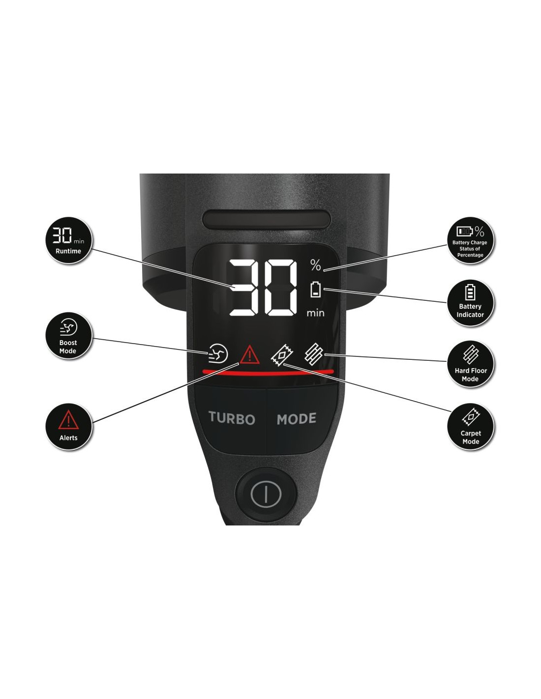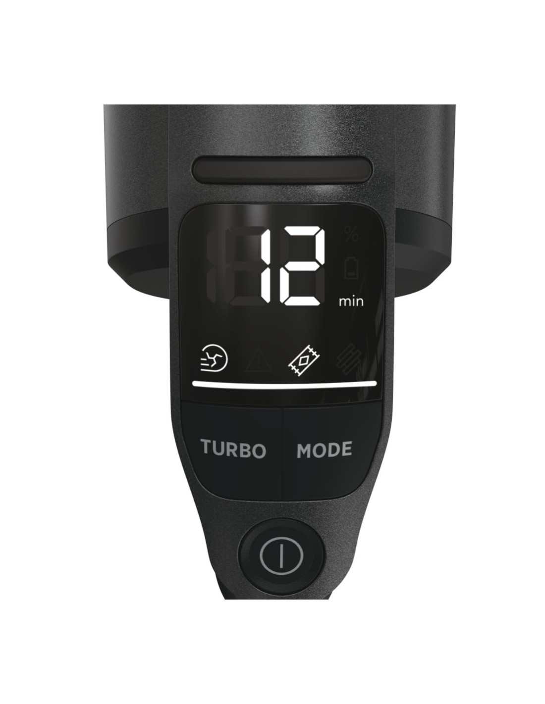 Un display intuitivo ti consente di avere tutto a portata di mano: avvisi, carica residua della batteria, indicatore della modalità pavimento. Puoi ottenere potenza extra passando alla modalità Turbo.