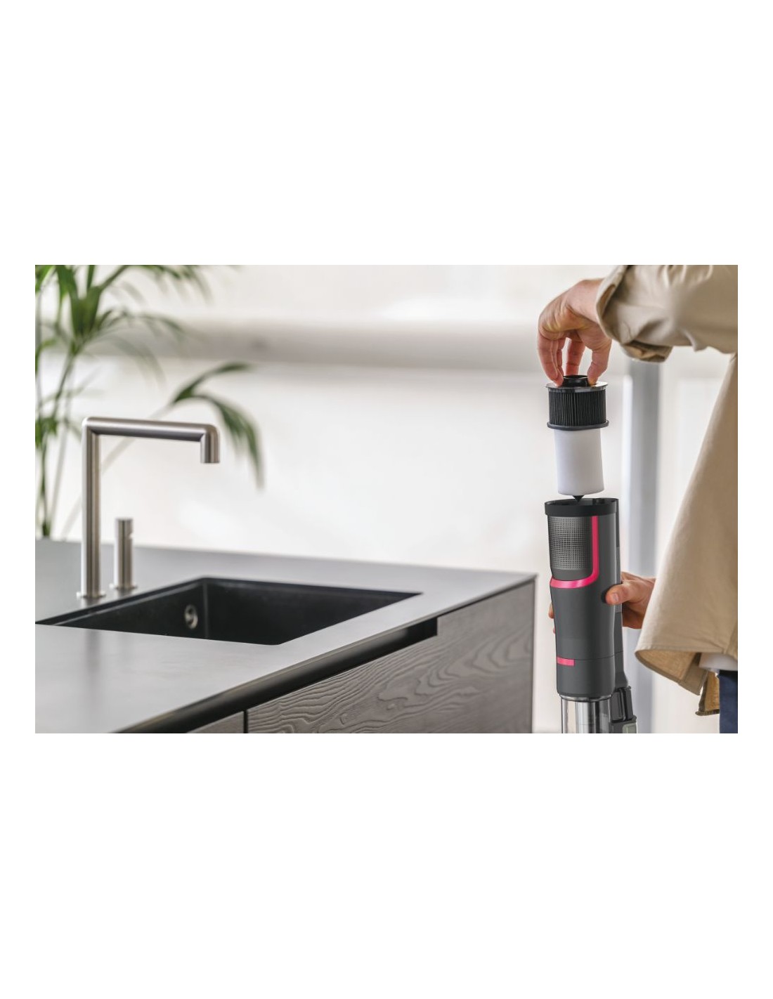 HFX è dotato della nuova bocchetta flessibile che si estende fino a 60 cm per raggiungere i ripiani alti, sotto i mobili e gli spazi più ristretti. Il dispositivo 2in1 Dusting&Furniture è ideale per pulire superfici dure e tessuti. Ti basterà agganciare il mini contenitore dedicato per pulire la tua casa con tutti gli accessori.