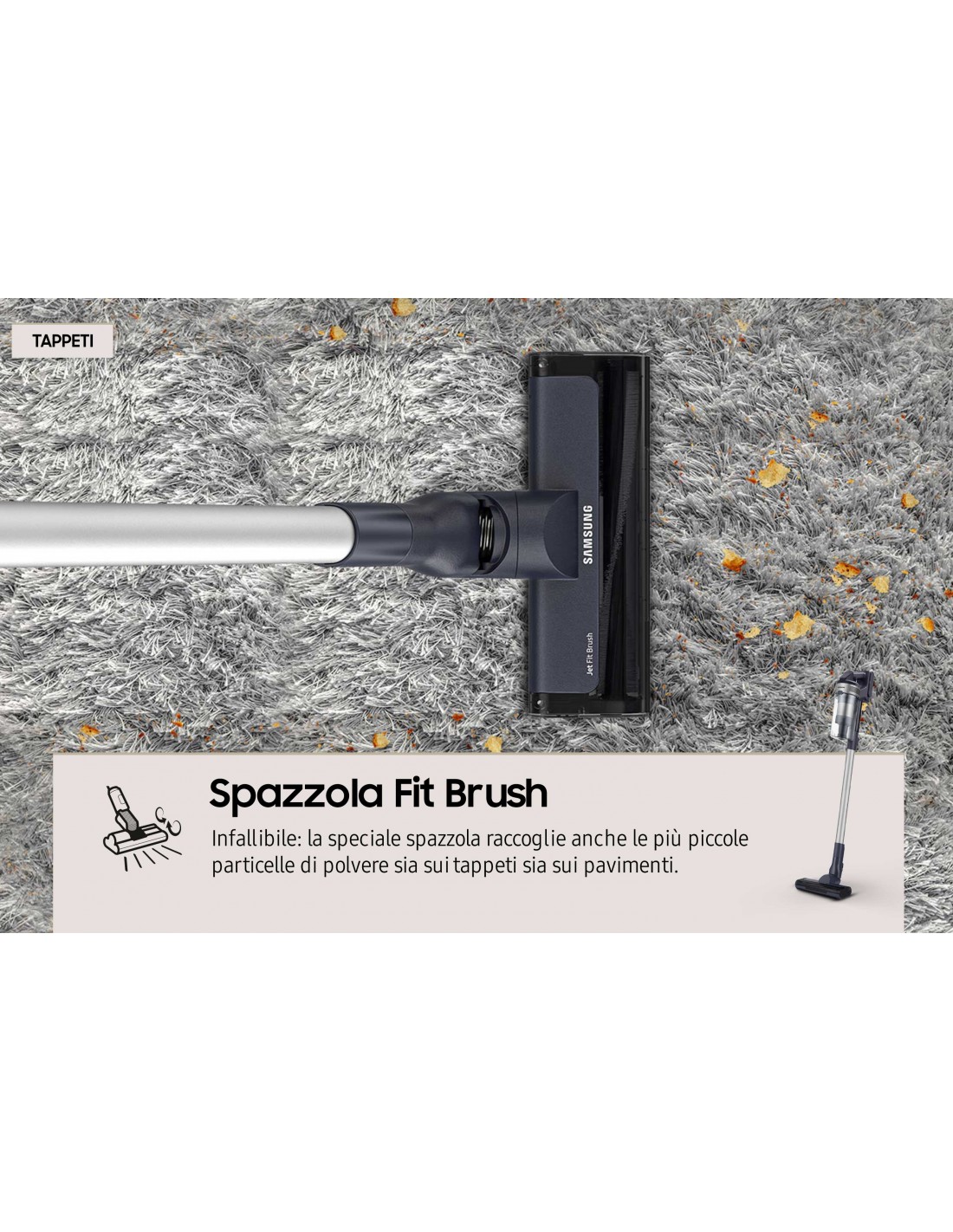 Il sistema Jet Fit raccoglie anche le più piccole particelle di polvere sia sui tappeti che sui pavimenti[11]. La testa ruota di 180° per cambiare facilmente direzione e pulire fin negli angoli. Inoltre, basta un gesto per staccare la spazzola e pulirla, mantenendo unigiene impeccabile.