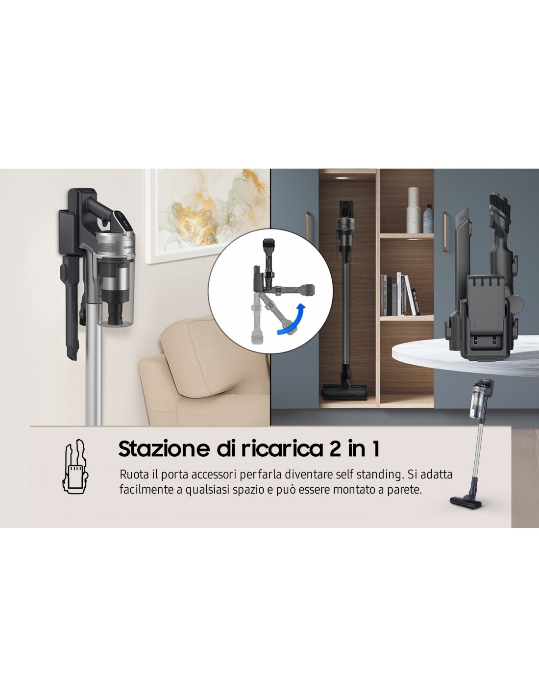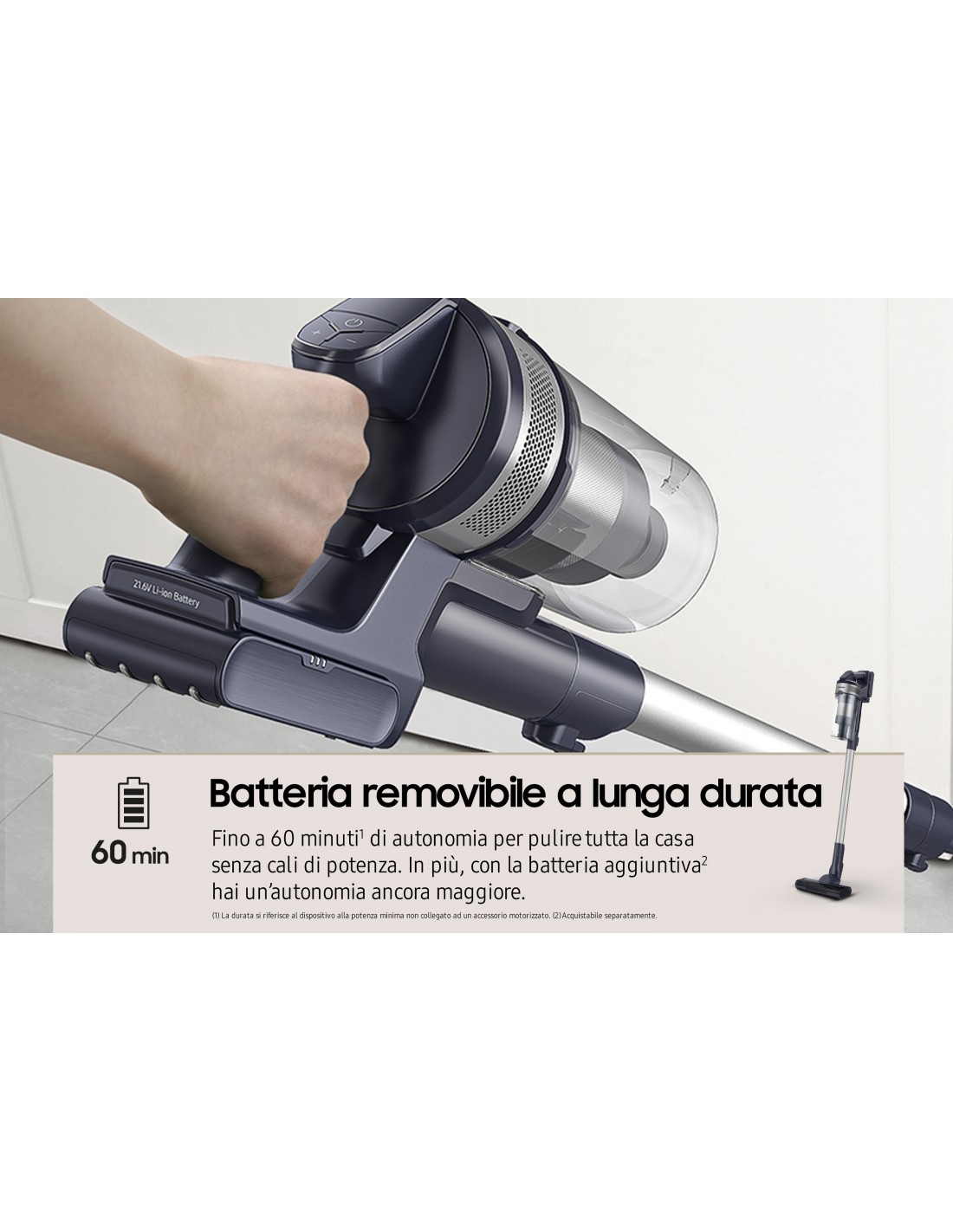 Pulisci la tua casa senza sforzo e con il massimo controllo. Il design ultraleggero assicura la massima praticità e riduce il rischio di traumi al polso. Il corpo della scopa pesa appena 1,48 kg, il 21% in meno[7] rispetto ai tradizionali aspirapolvere Samsung. In questo modo puoi pulire facilmente tutta la casa.