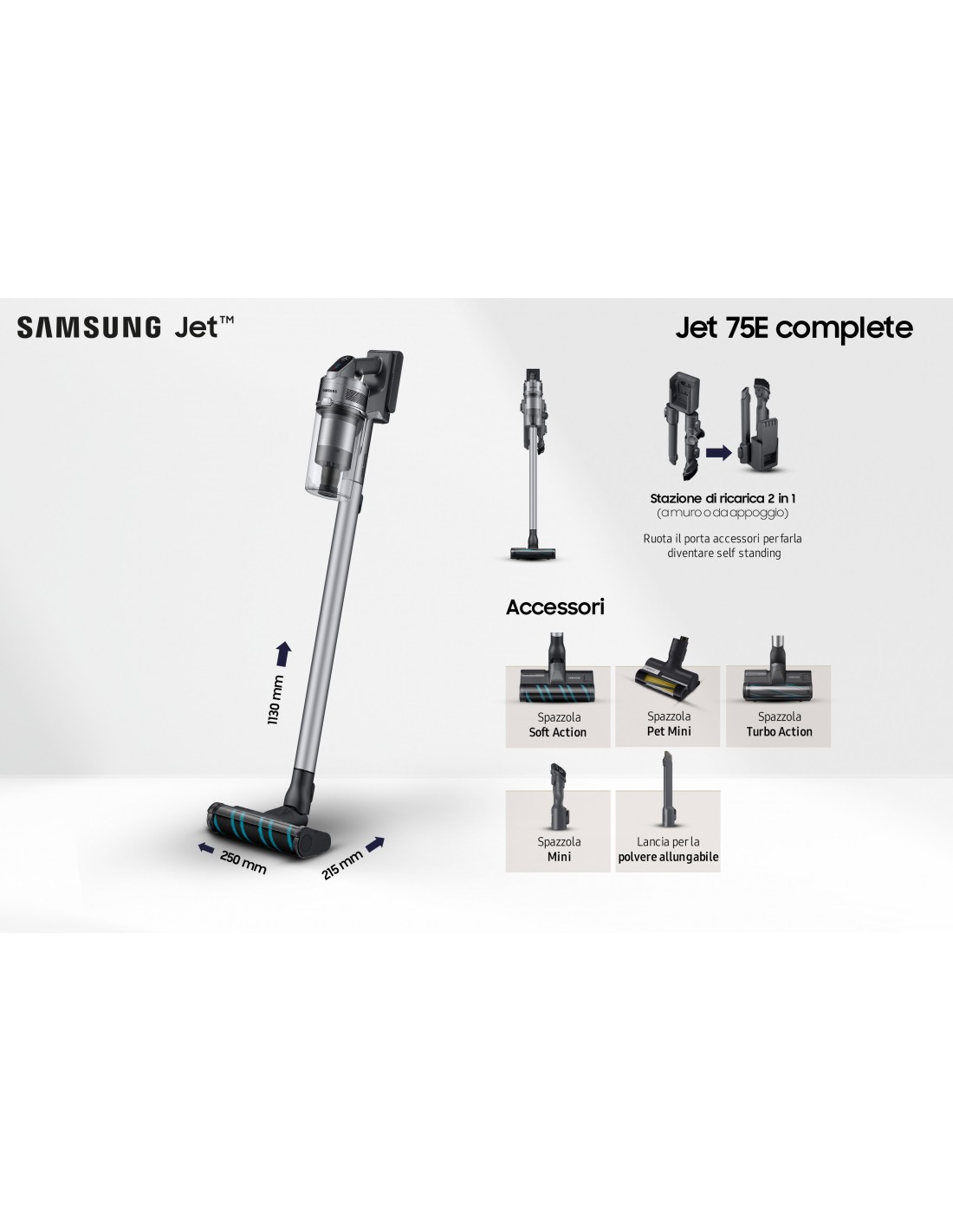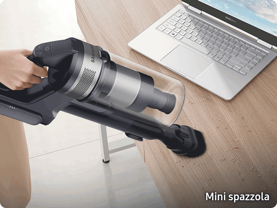 Design ultra leggeroPulisci la tua casa senza sforzo e con il massimo controllo. Il design ultra leggero assicura la massima praticità e riduce il rischio di traumi al polso. Il corpo della scopa pesa appena 1,66 kg, il 12% in meno[7] rispetto ai tradizionali aspirapolvere Samsung. In questo modo puoi pulire facilmente tutta la casa.