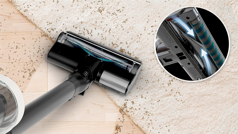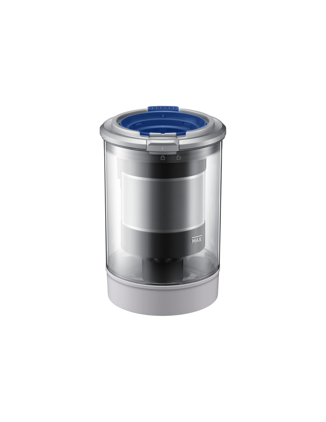 Contenitore lavabileMantenere il contenitore igienico e svuotarlo non è mai stato così semplice. Il contenitore da 0,5 l che comprende anche il sistema multiciclonico, è completamente lavabile, per una pulizia e un'igiene impeccabili[15]. In più, per rimuoverlo non serve staccare il tubo dal corpo della scopa elettrica: basta inclinarlo e il gioco è fatto.
