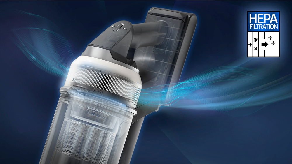 Sistema di filtraggio HEPADa oggi potrai respirare un'aria più pulita e con meno polvere[3] , senza più pensieri o preoccupazioni. Il sistema di filtraggio HEPA, grazie a un filtro per le polveri sottili ancora più efficiente e con una tenuta semplicemente perfetta, è in grado di ridurre in modo efficace la quantità di particelle di polveri sottili[4] rilasciate nell'aria. In questo modo, laria emessa sarà più pura rispetto agli aspirapolvere Samsung senza filtro HEPA, per una casa sempre pulita.