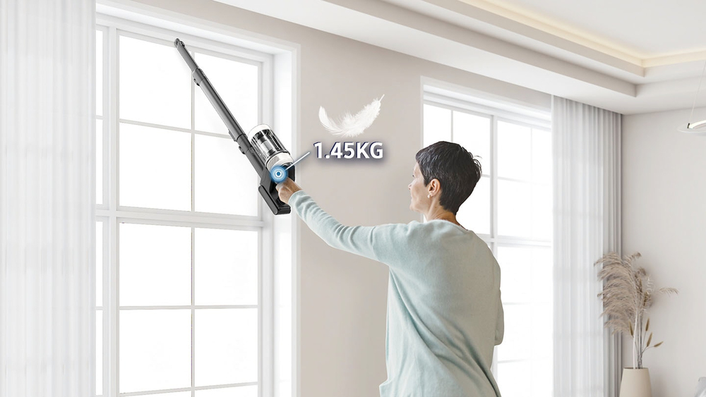 Pulizia con la massima flessibilità. Il design leggero e le prestazioni elevate sono ideali per l'uso quotidiano, dalla pulizia rapida alla pulizia completa della casa. Grazie al peso di soli 1,45 kg e a una maggiore maneggevolezza, è possibile muoversi senza sforzo e in modo semplice per ottenere una pulizia perfetta.