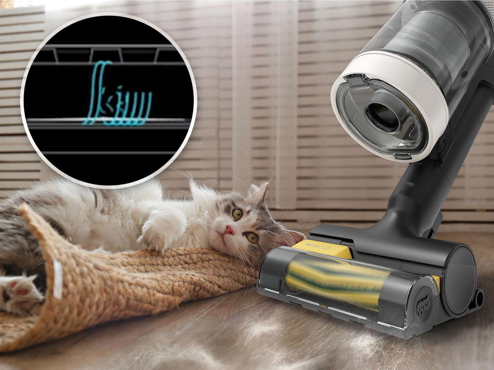 Rimuovi i fastidiosi peli di animale in tutta facilità. Grazie all'apposita spazzola Pet Tool +[23] , dotata di bocchetta e setole in gomma, oltre che compatta e facile da manovrare, non ti sfuggirà più nemmeno un pelo[24]. Lo speciale inserto a V raccoglie i peli, che vengono poi tagliati in pezzi più piccoli dal grinder autopulente[25] per ridurre il rischio di aggrovigliamento.