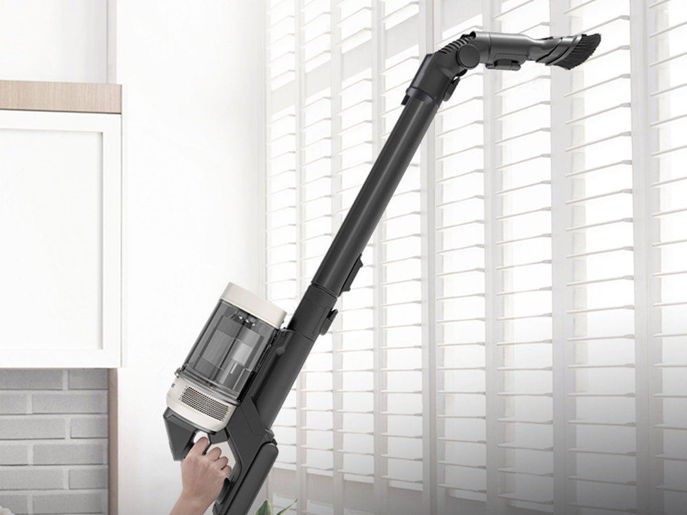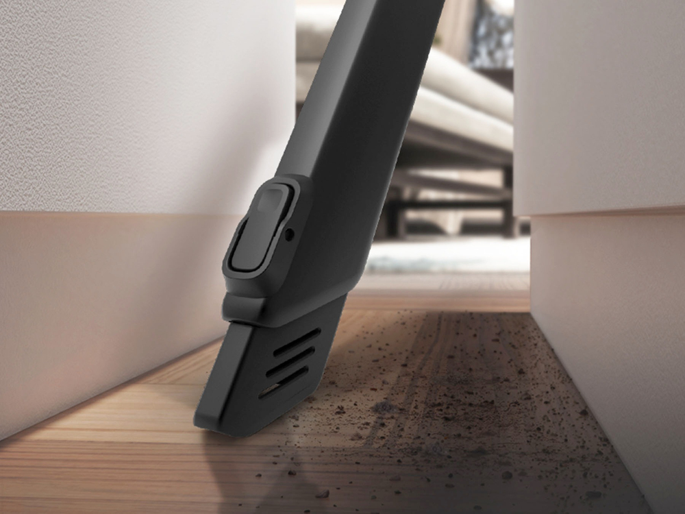 Pulisci facilmente lo sporco che si accumula sopra il frigorifero, sotto i mobili e negli angoli difficili da raggiungere. L'accessorio flessibile è in grado di piegarsi di 90° per arrivare nei punti più alti o inaccessibili senza ridurre la potenza di aspirazione.