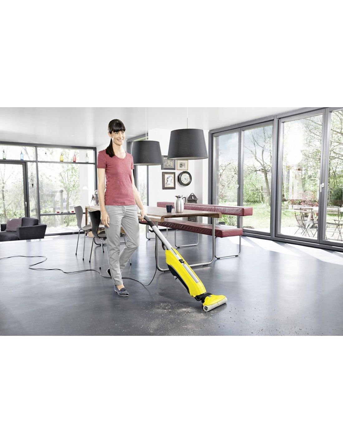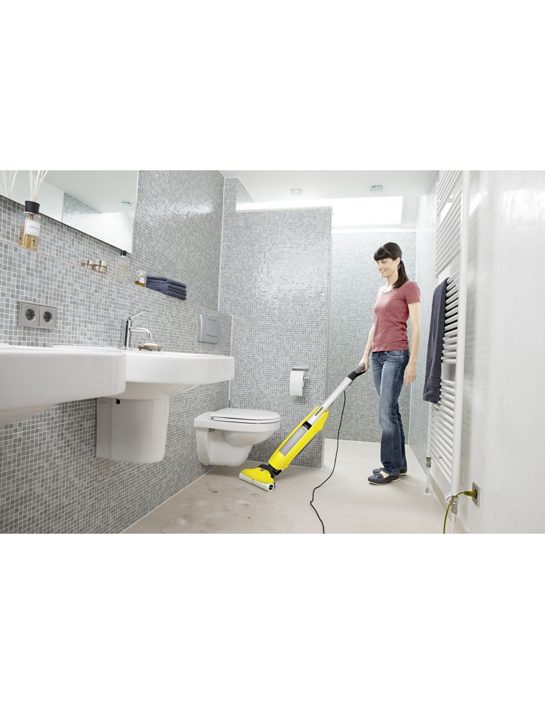 Kärcher FC 5. Tipo di contenitore della polvere: Senza sacchetto, Colore del prodotto: Nero, Argento, Giallo, capacità del serbatoio con acqua pulita: 0,4 L. Tipo di pulizia: Secco e bagnato, Superficie di pulizia: Superfici rigide, Copertura di superficie per serbatoio: 60 m². Lunghezza cavo: 7 m. Alimentazione: AC, Massima potenza in entrata: 460 W, Tensione di ingresso AC: 220-240 V. Larghezza: 270 mm, Profondità: 320 mm, Altezza: 1220 mm