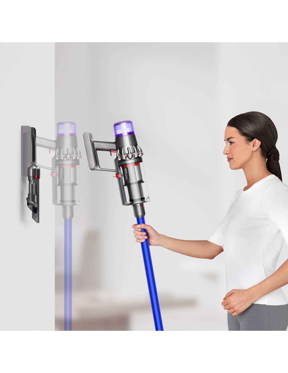 L'aspirapolvere Dyson V11™ si ripone insieme agli accessori in una stazione di ricarica a muro, per essere sempre pronto all'uso.