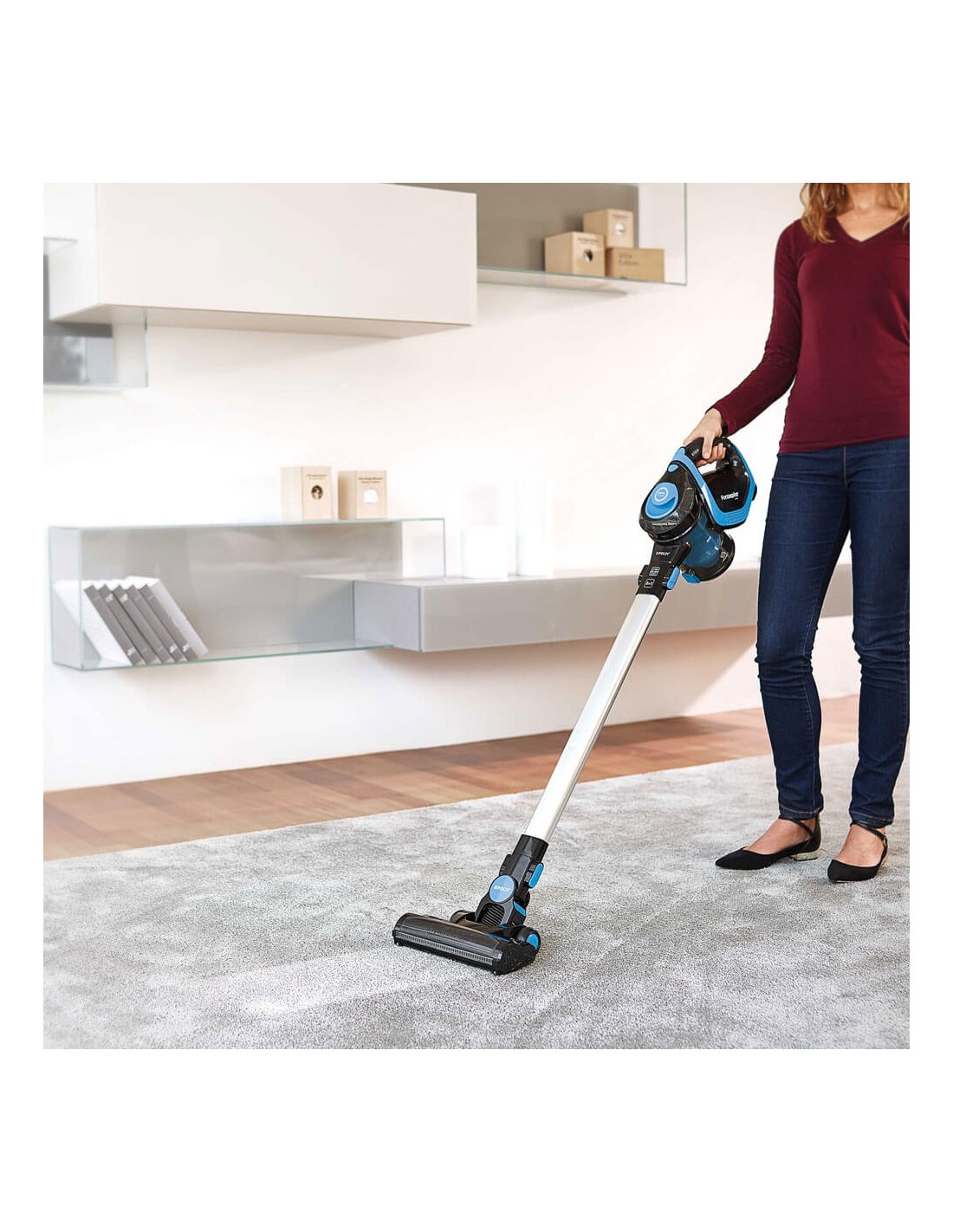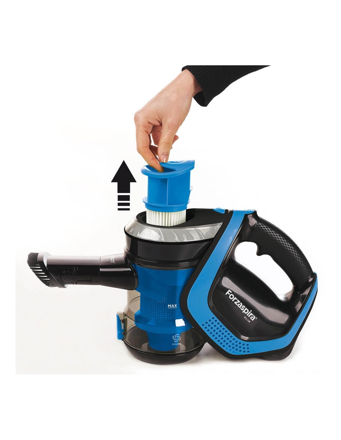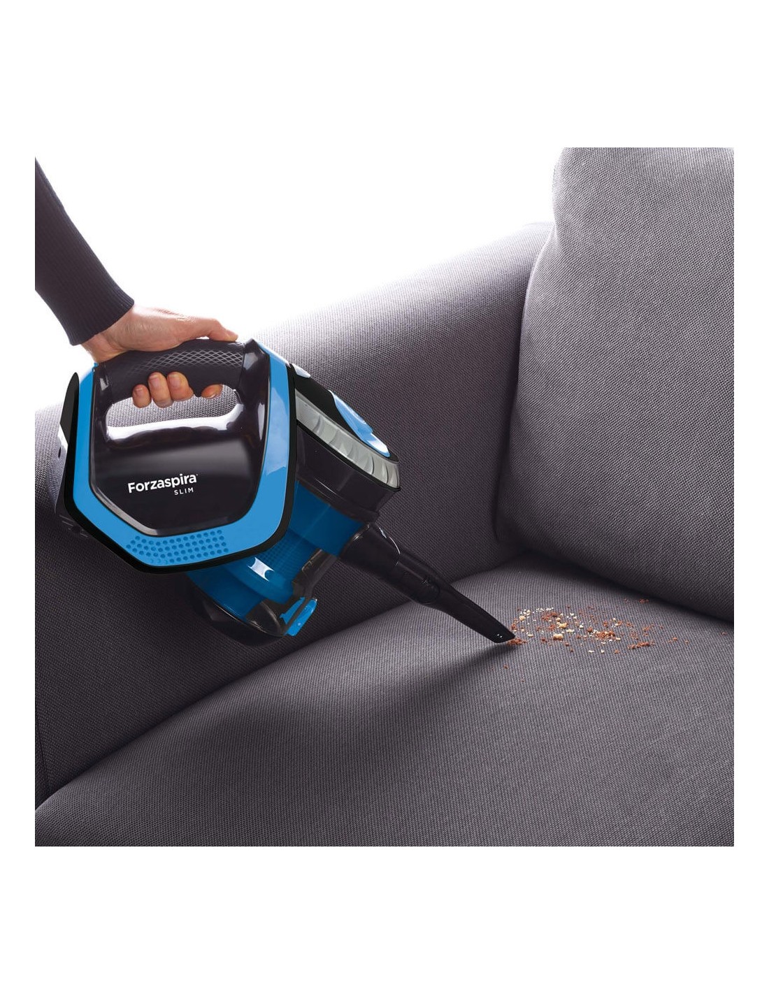 Polti SR100. Tipo di pulizia: Secco, Sistema di filtraggio dell'aspirapolvere: HEPA, Metodo di separazione dello sporco: Ciclonico. Tipo di contenitore della polvere: Senza sacchetto, Capacità aspirazione solidi: 0,5 L, Colore del prodotto: Nero, Blu. Alimentazione: Batteria, Durata di funzionamento: 50 min, Tempo di ricarica: 4 h. Peso: 2,6 kg