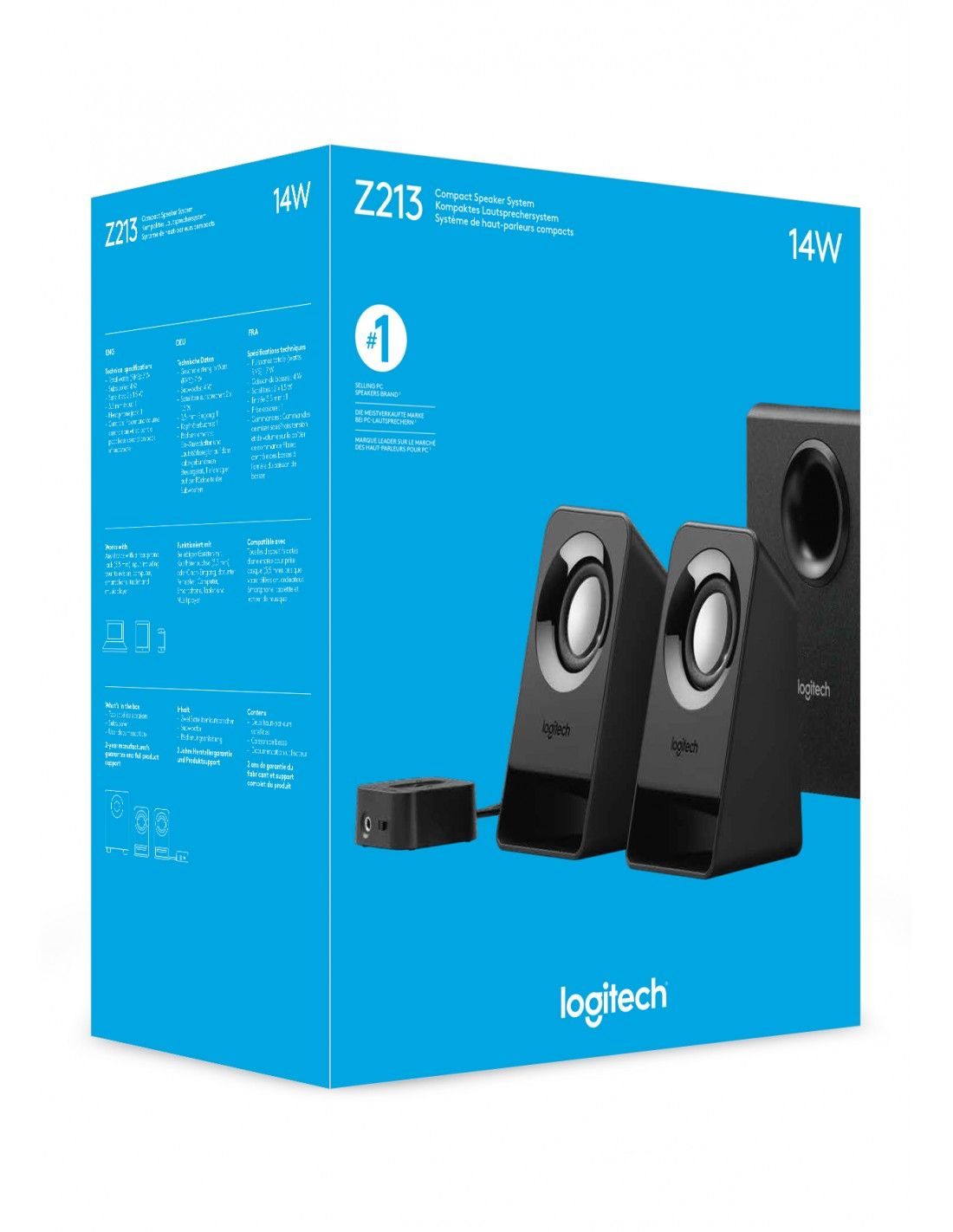 Logitech Z213. Sistema audio: 2.1 canali, Potenza in uscita (RMS): 7 W, Utilizzo raccomandato: PC. Distorsione armonica totale (THD): 10%. Potenza Satellites RMS: 1,5 W, Gamma freq. altoparlante satellitare: 65 - 20000 Hz, Impedenza altoparlante satellitare: 4 Ω. Potenza RMS subwoofer: 4 W, Gamma di frequenza subwoofer: 65 - 20000 Hz, Impedenza subwoofer: 4 Ω. Alimentazione: AC