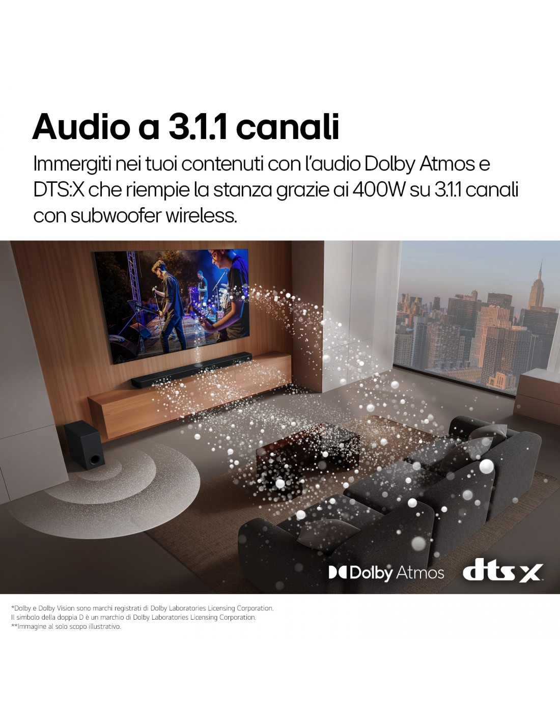 | Tecnologie LG (AV/TV) | AI Sound Pro, Dolby Atmos®, WOW Interface, WOW Orchestra |