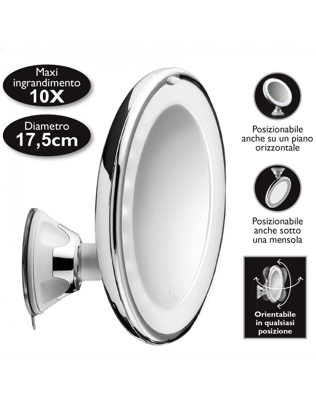 - Con potente ventosa a ghiera per essere posizionato facilmente sia su piano orizzontale che a parete.