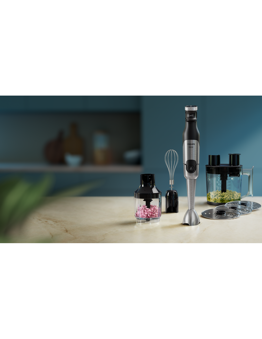 Con il 50% di potenza in più* per tritare qualsiasi ingrediente, il frullatore a immersione Philips serie 5000 è la scelta perfetta per ottenere risultati eccellenti e uniformi. Gusta zuppe cremose e salse vellutate, esplorando nuovi modi di preparare i tuoi piatti preferiti!