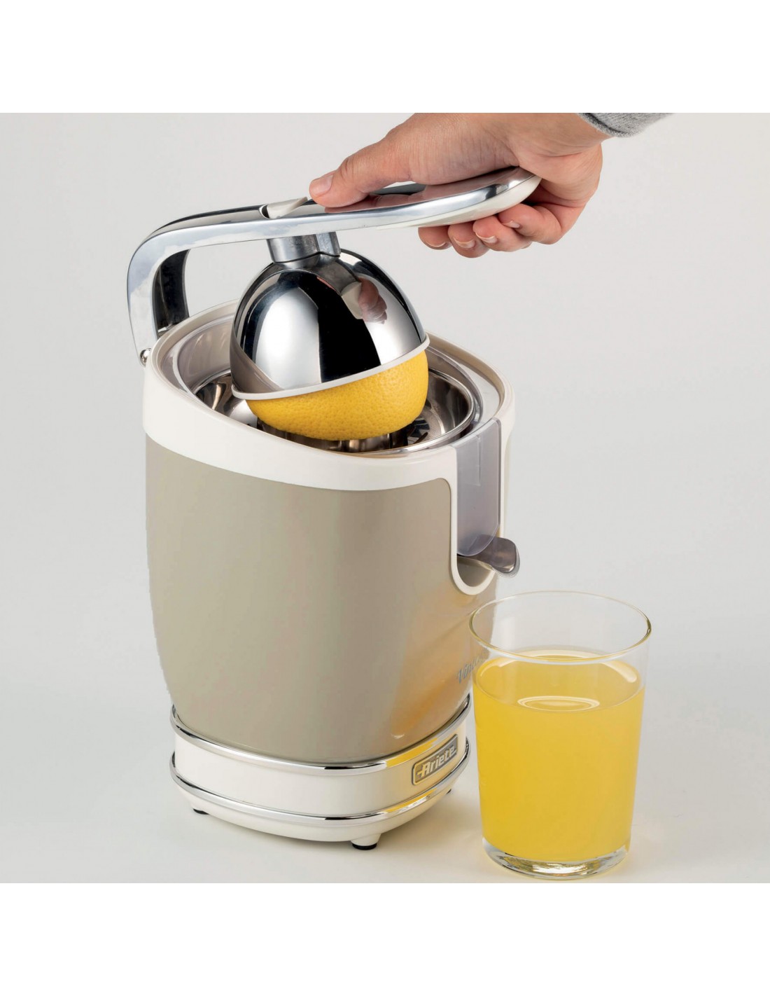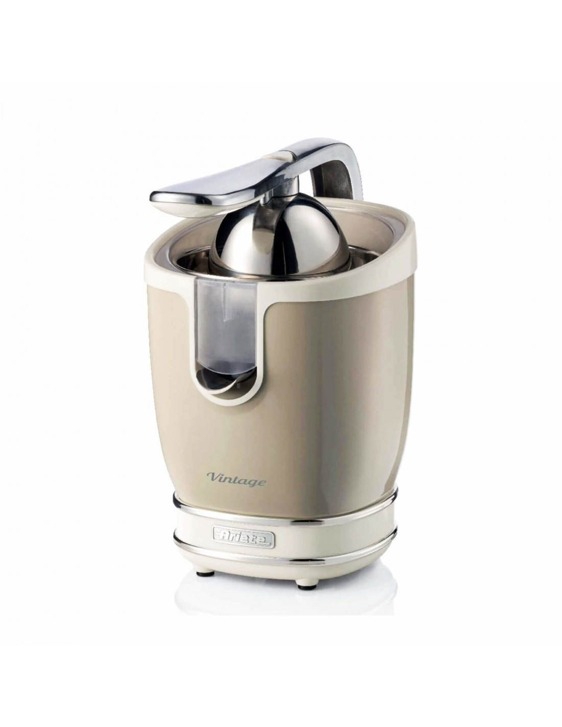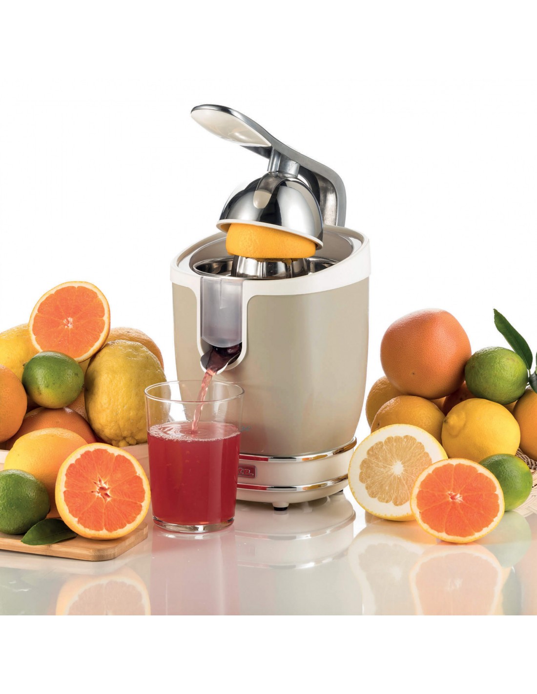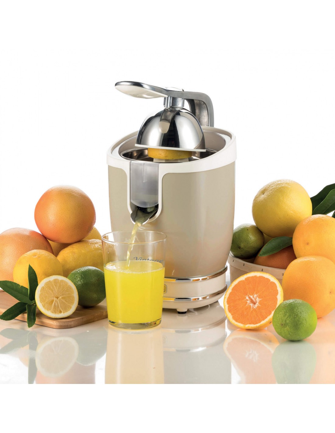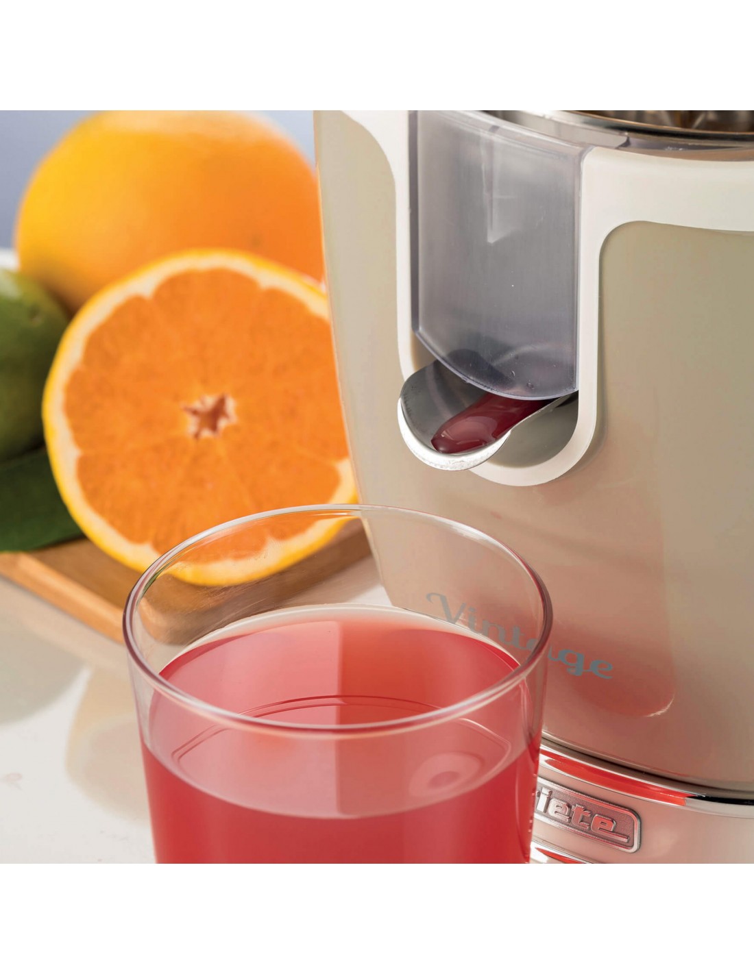 Una spremuta di arance al mattino ti garantisce una carica di energia, vitamine e sali minerali unica. Gli agrumi sono infatti ricchi di proprietà nutritive indispensabili per iniziare la giornata con l'umore giusto. Con lo spremiagrumi elettrico con leva Vintage di Ariete prepari a casa una spremuta di arance buona e genuina, perché scegli tu i frutti migliori, dolci e maturi, per spremerli al momento. Aggiungi qualche cubetto di ghiaccio e un cucchiaino di zucchero o miele per un tocco di dolcezza in più.Per aumentare i benefici della Vitamina C presente naturalmente nelle arance, si consiglia di bere la spremuta appena fatta, ma potete decidere anche di far bollire la spremuta fatta in casa in una pentola con lo zucchero, per conservarla più a lungo in un contenitore chiuso ermeticamente.