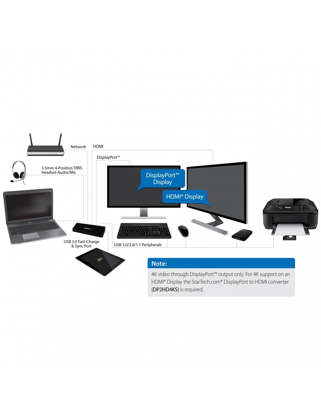 Docking Station Laptop universale USB 3.0 a doppia uscita video 4K DisplayPort / HDMI - Gbe + porta USB a ricarica rapida, Cablato, USB 3.0 Type-B, 3,5 mm, USB tipo A, 10,100,1000 Mbit/s, IEEE 802.3,IEEE 802.3ab,IEEE 802.3u