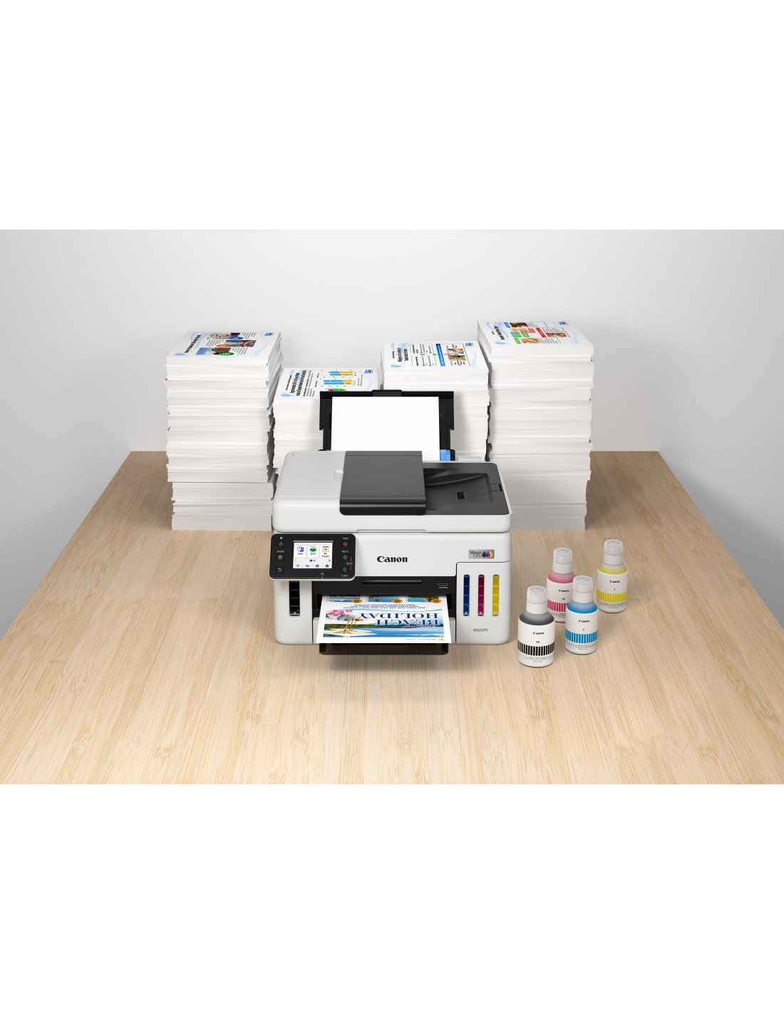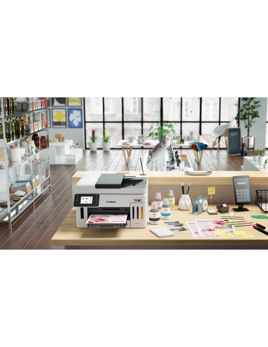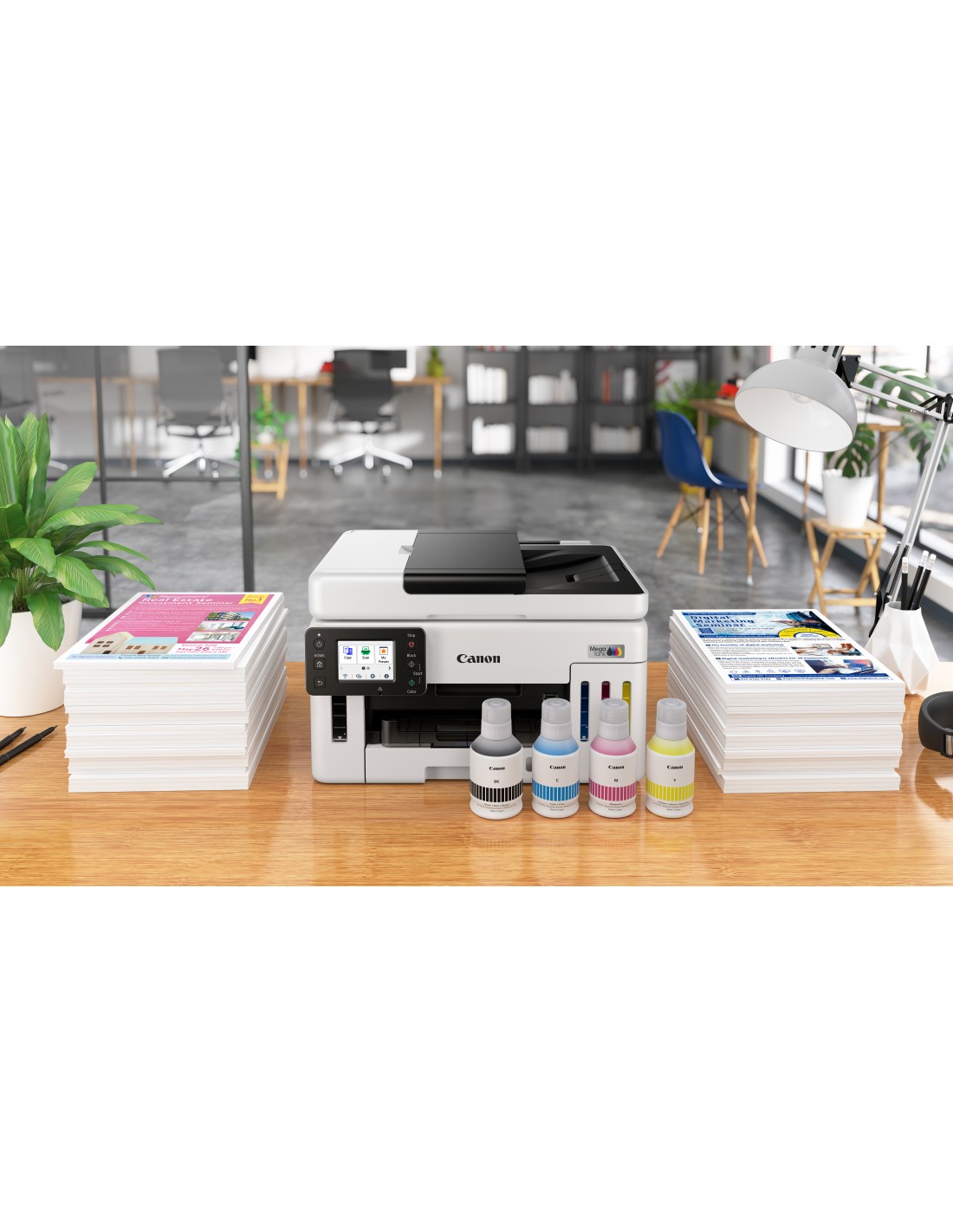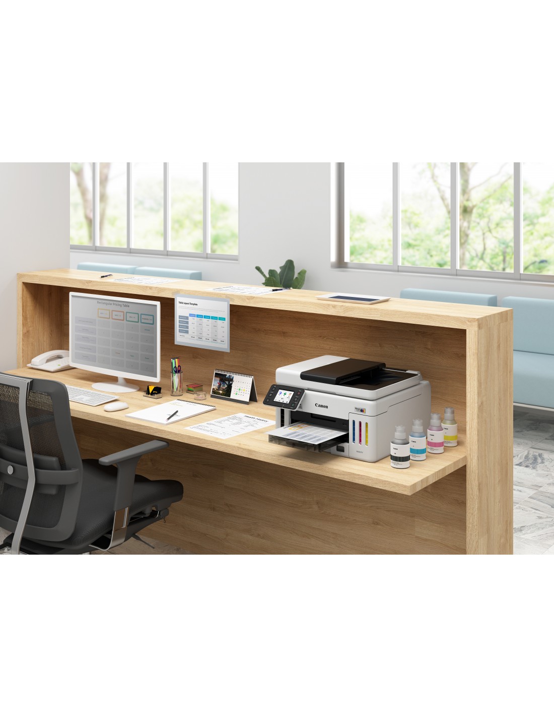 Canon MAXIFY GX 6150. Tecnologia di stampa: Ad inchiostro, Stampa: Stampa a colori, Risoluzione massima: 600 x 1200 DPI. Copia: Copia a colori. Scansione: Scansione a colori, Risoluzione di scansione ottica: 1200 x 1200 DPI. Funzione duplex: Copia, Stampa. Massimo formato carta serie ISO A: A4. Wi-Fi. Stampa diretta. Colore del prodotto: Nero, Bianco