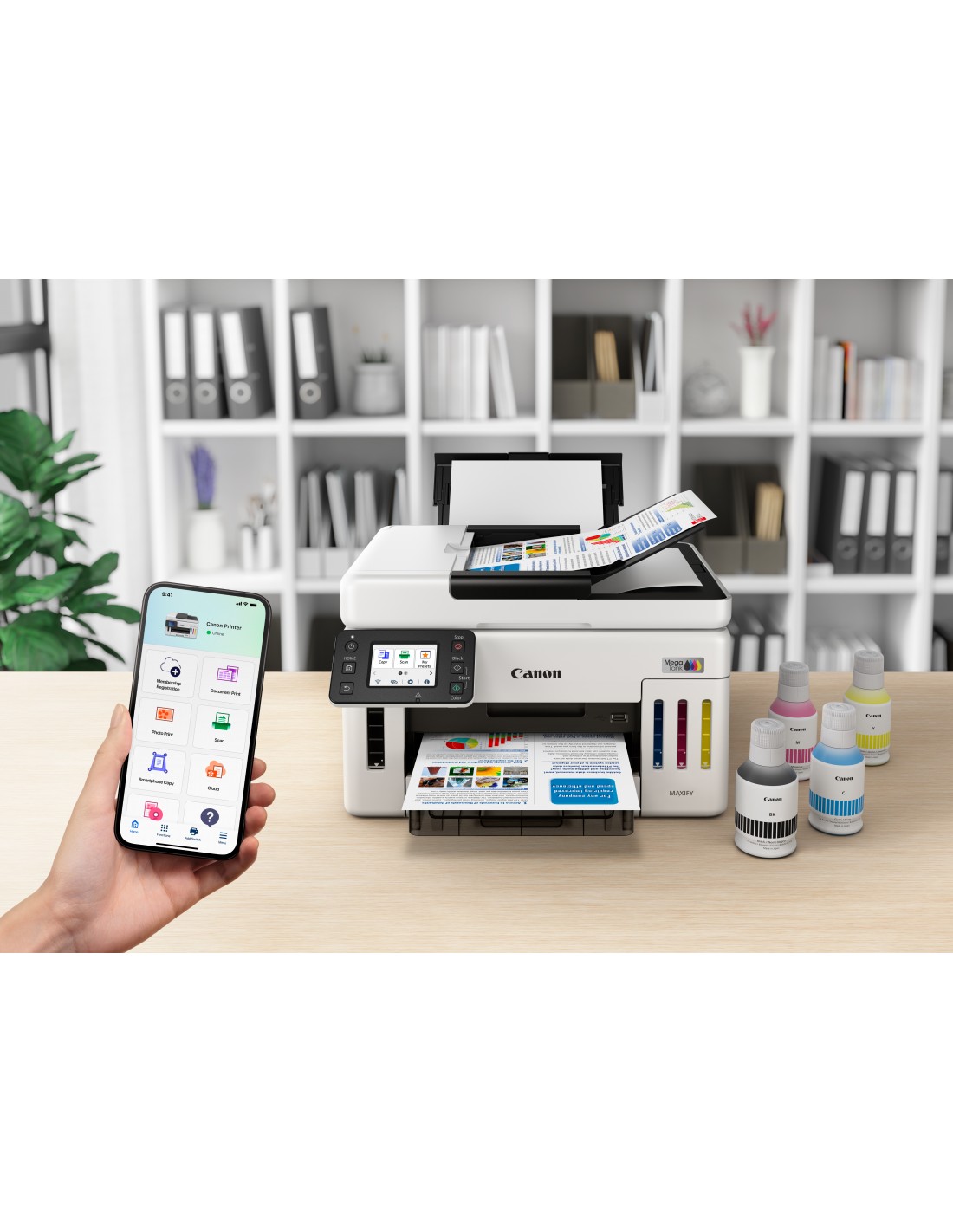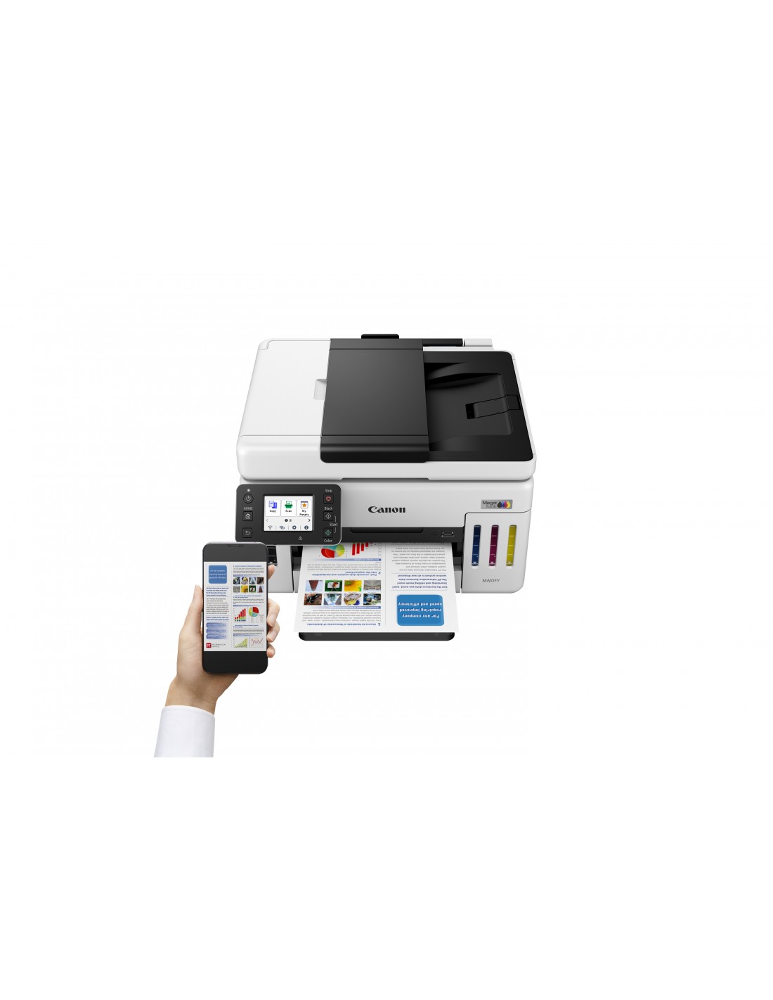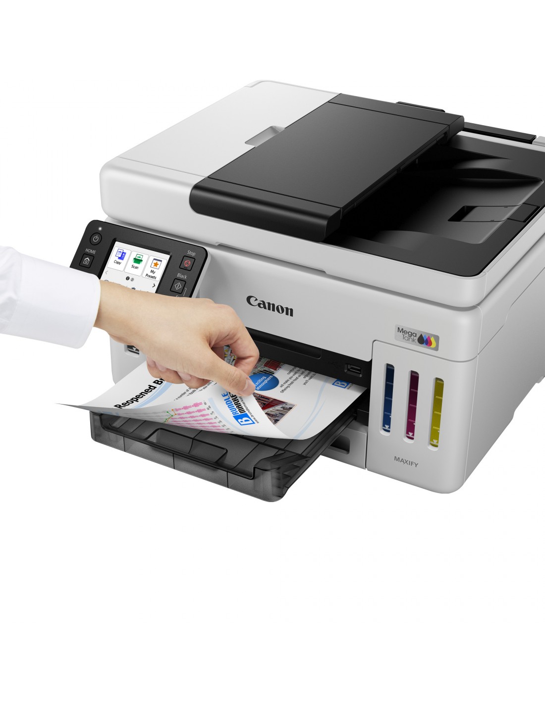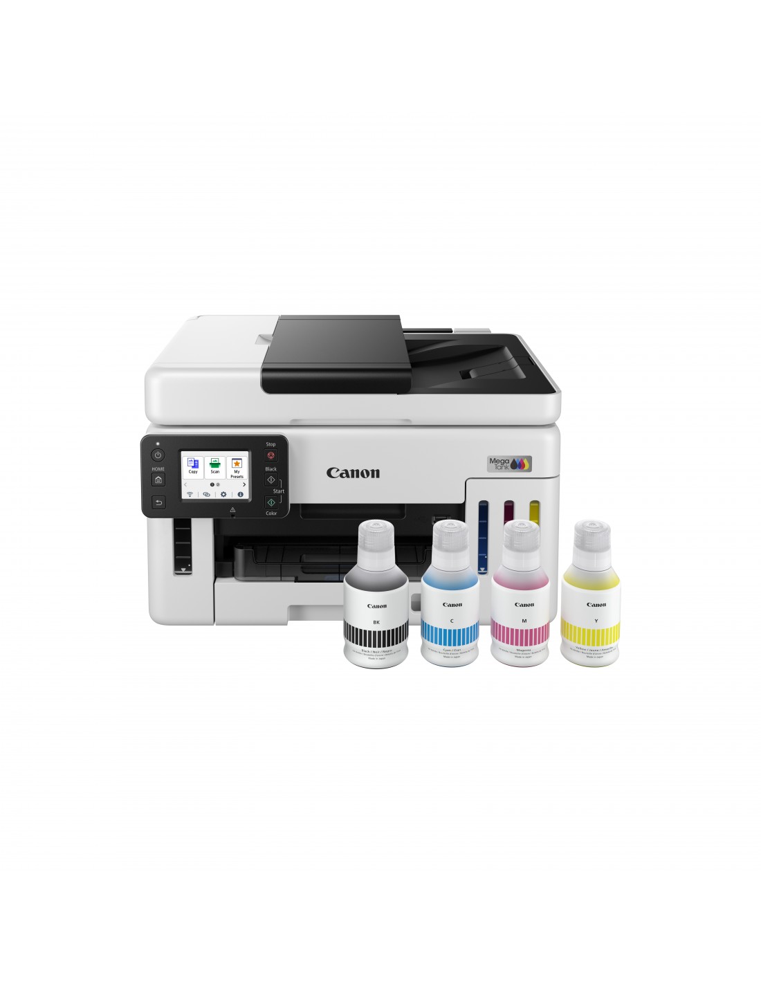 Canon MAXIFY GX 6150. Tecnologia di stampa: Ad inchiostro, Stampa: Stampa a colori, Risoluzione massima: 600 x 1200 DPI. Copia: Copia a colori. Scansione: Scansione a colori, Risoluzione di scansione ottica: 1200 x 1200 DPI. Funzione duplex: Copia, Stampa. Massimo formato carta serie ISO A: A4. Wi-Fi. Stampa diretta. Colore del prodotto: Nero, Bianco