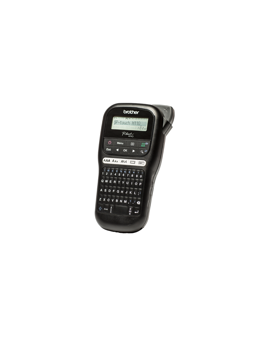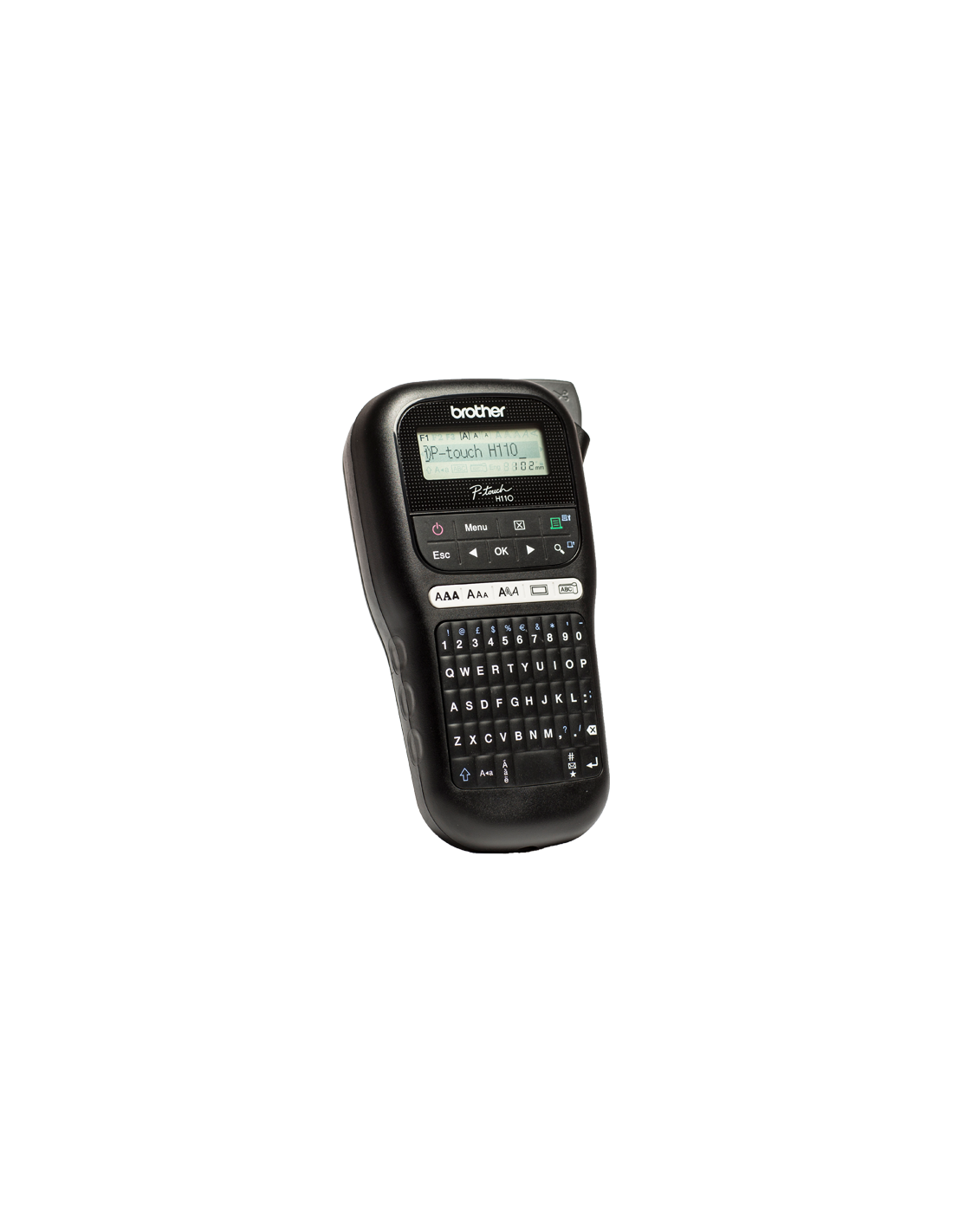 Brother PT-H110. Tecnologia di stampa: Trasferimento termico, Risoluzione massima: 180 x 180 DPI, Velocità di stampa: 20 mm/s. Colore del prodotto: Nero, Tipologia display: LCD, Struttura tastiera: QWERTY. Memoria etichetta: 15 etichetta(e). Larghezza carta supportata: 3.5, 6, 9, 12 mm. Tipo nastro: TZe, Taglia nastro: Manuale, Lunghezza massima testo per linea: 80 caratteri