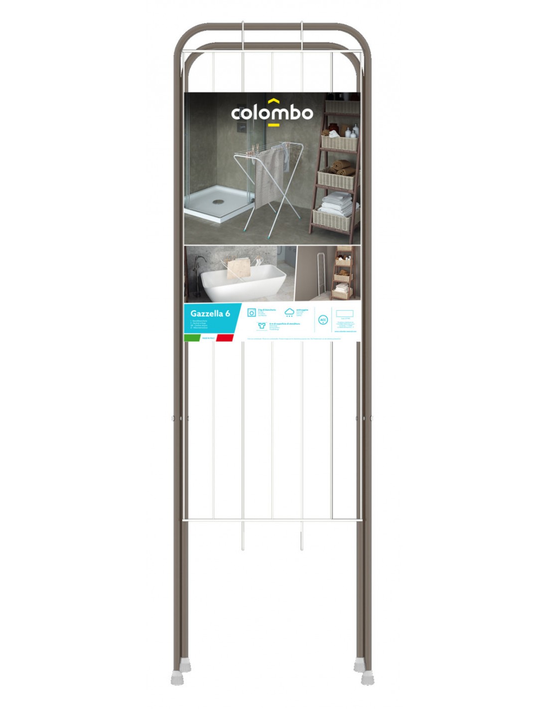 Colombo New Scal Gazzella 6. Tipo: Stendibiancheria da pavimento, Materiali: Acciaio, Colore del prodotto: Grigio. Larghezza: 910 mm, Profondità: 340 mm, Altezza: 830 mm. Quantità per pacco: 1 pz