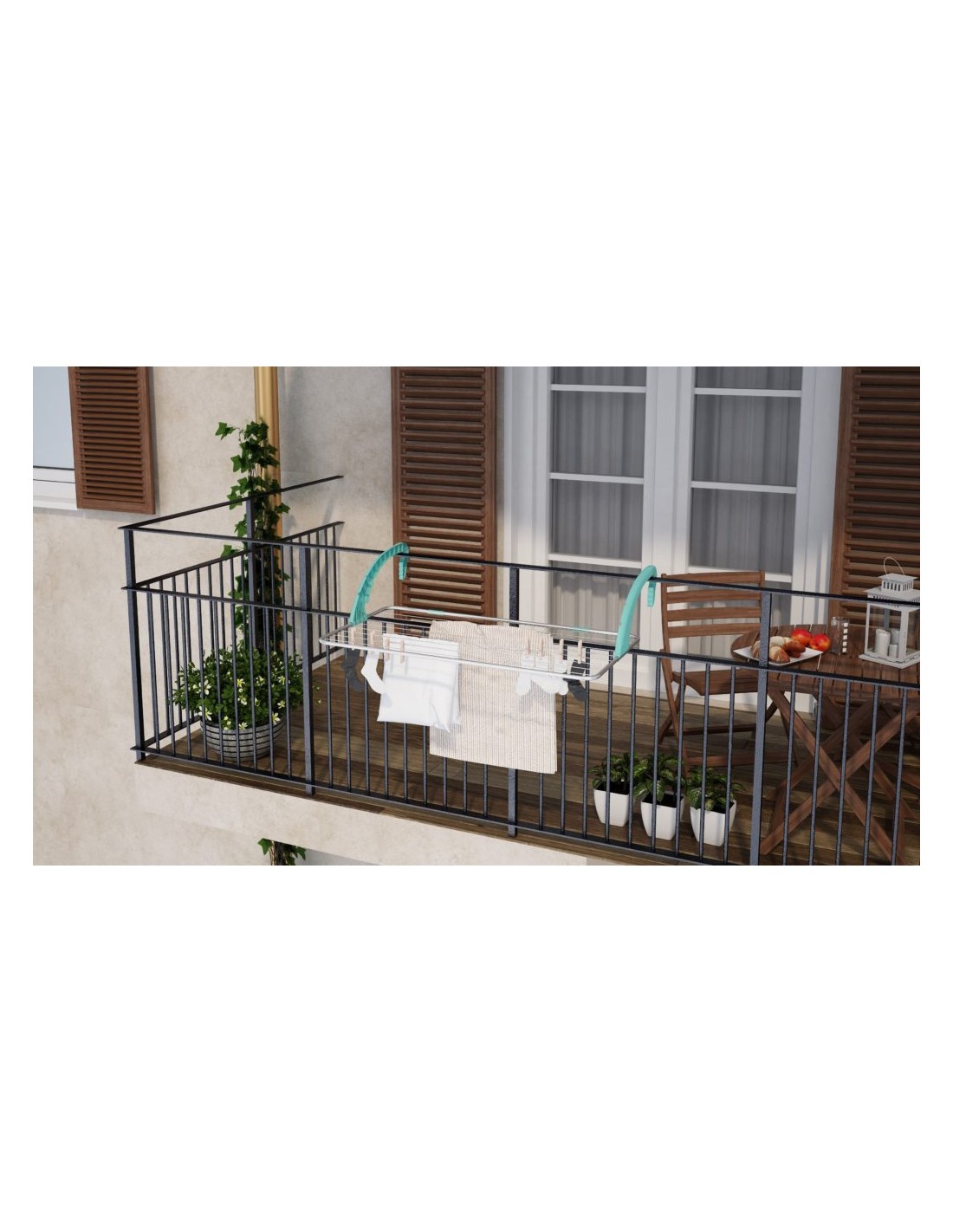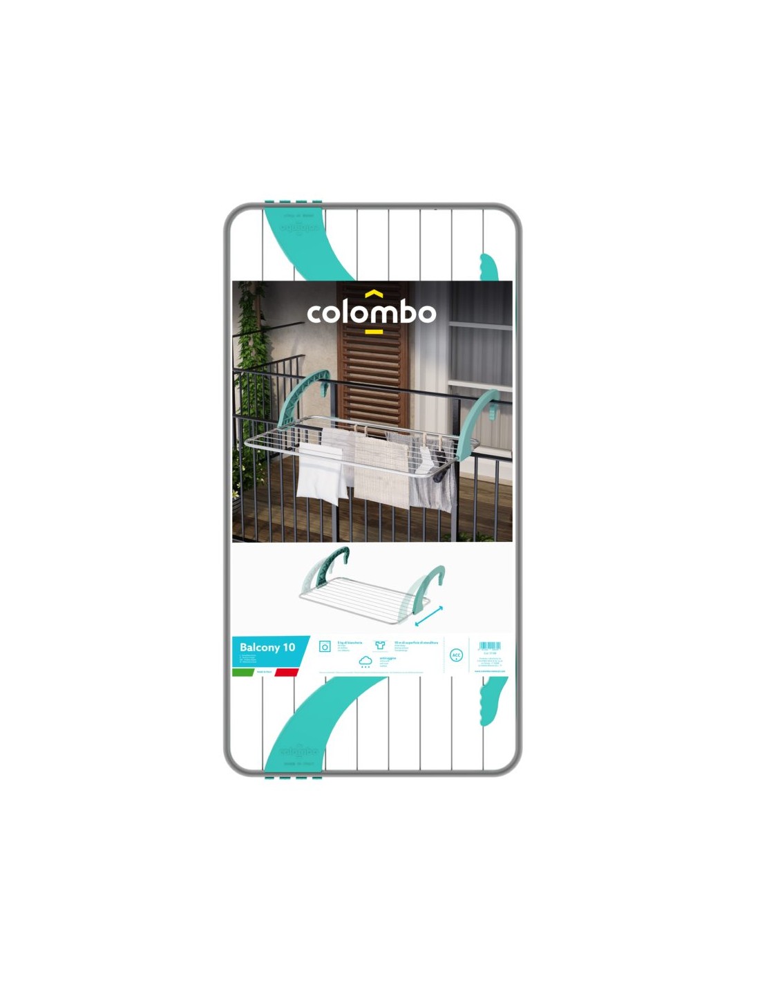 Colombo New Scal Balcony 10. Tipo: Stendino attaccabile, Materiali: Acciaio, Colore del prodotto: Grigio, Turchese. Larghezza: 1100 mm, Profondità: 550 mm, Altezza: 250 mm. Quantità per pacco: 1 pz
