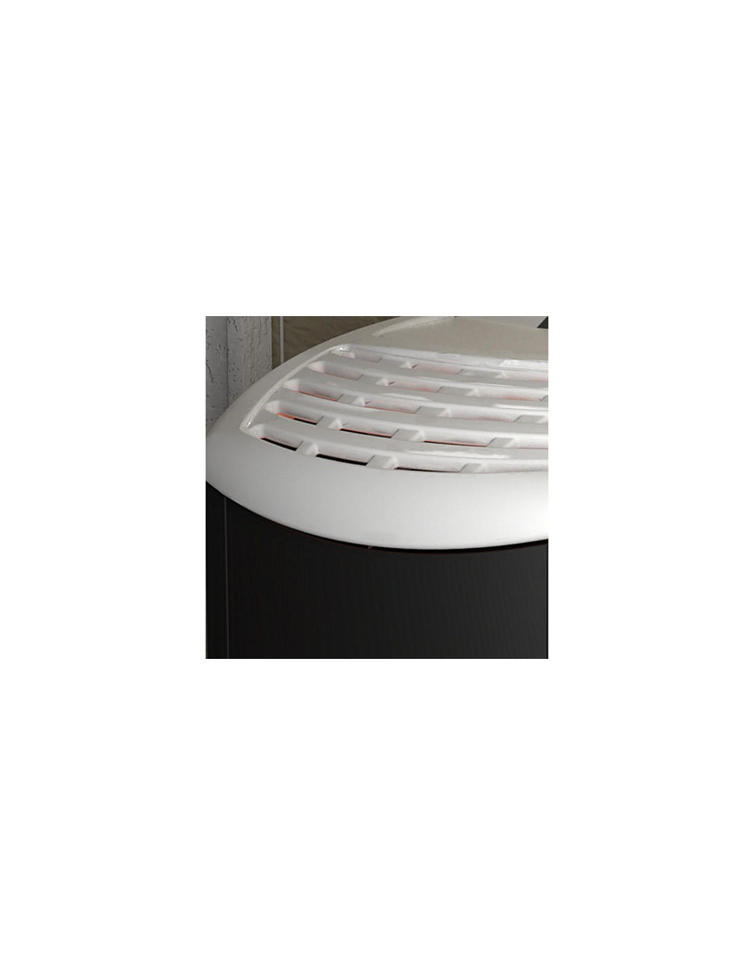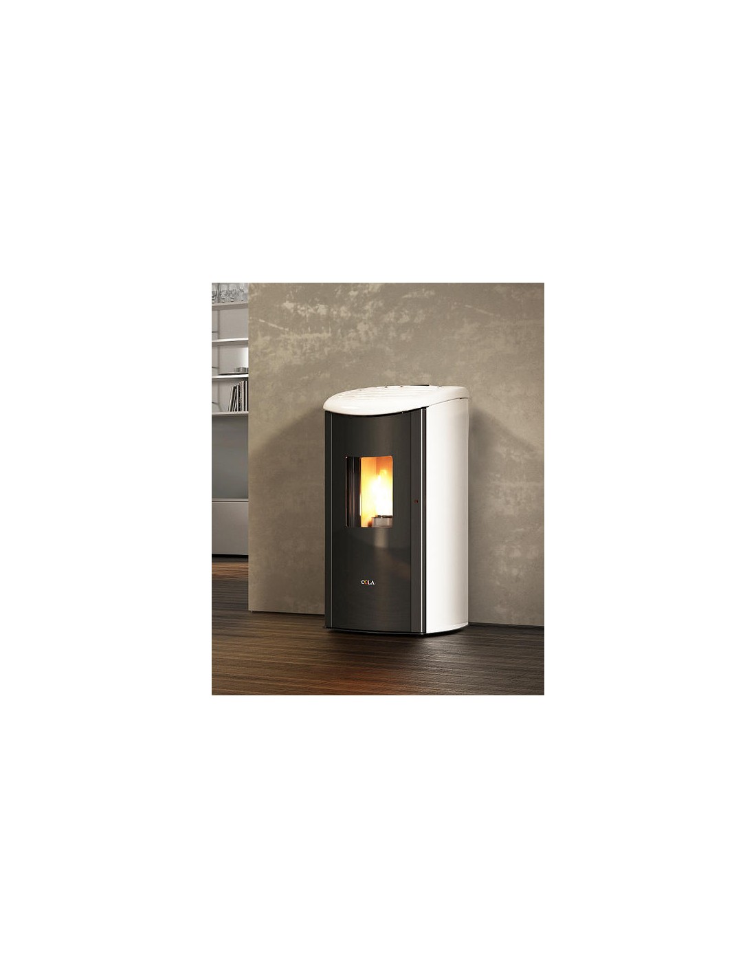 Stufa a pellet ventilata con elegante top in maiolica e fianchi arrotondati in acciaio. Doppia porta in cristallo ceramico tondo serigrafato. Telecomando di nuova generazione, cassetto cenere e maniglia estraibili. Disponibile in diversi colori.