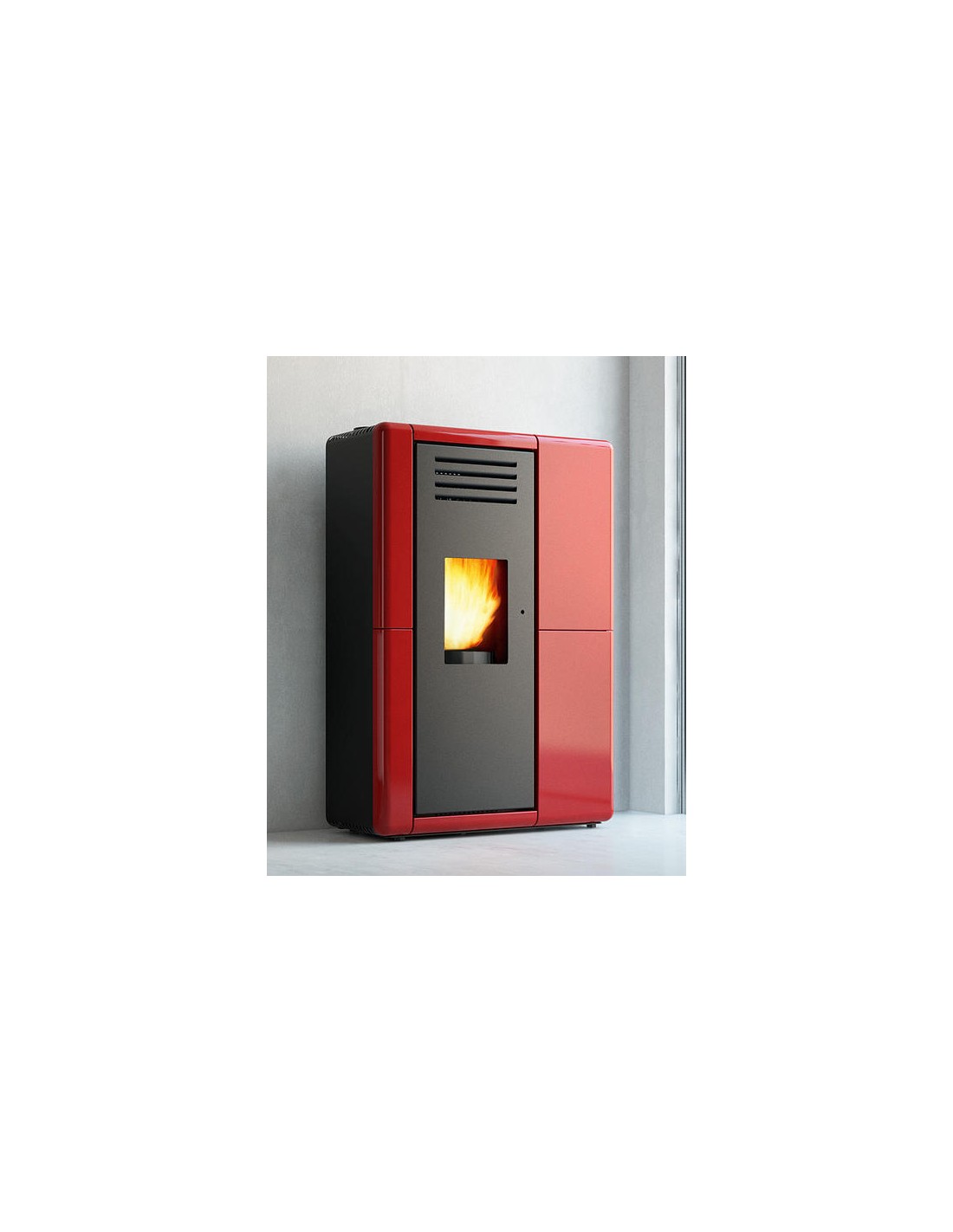 Stufa a pellet ventilata in acciaio verniciato indicata per spazi ristretti profonda solo 30 cm. Top e cornice arrotondata in maiolica. Porta in ghisa verniciata con cristallo ceramico panoramico. Camera di combustione di recente concezione ad alto rendimento. Telecomando di nuova generazione, cassetto cenere a maniglia estraibili. Uscita fumi superiore o posteriore.