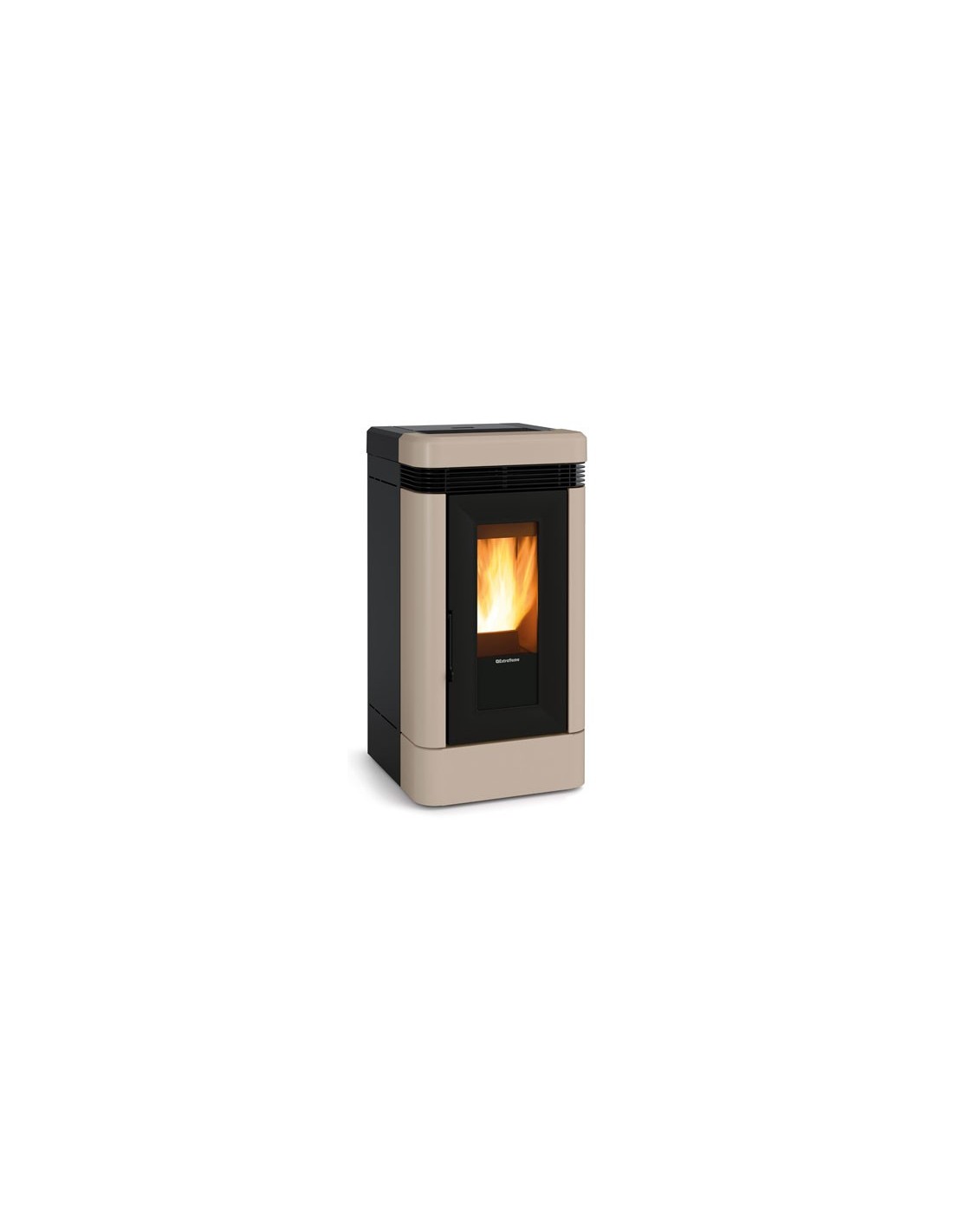 Stufa a pellet ventilata con rivestimento in maiolica.