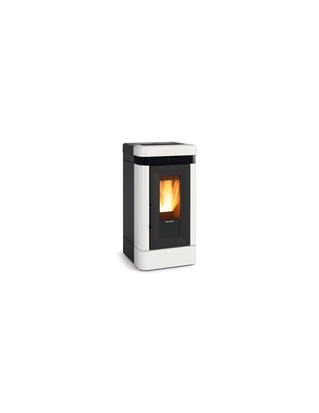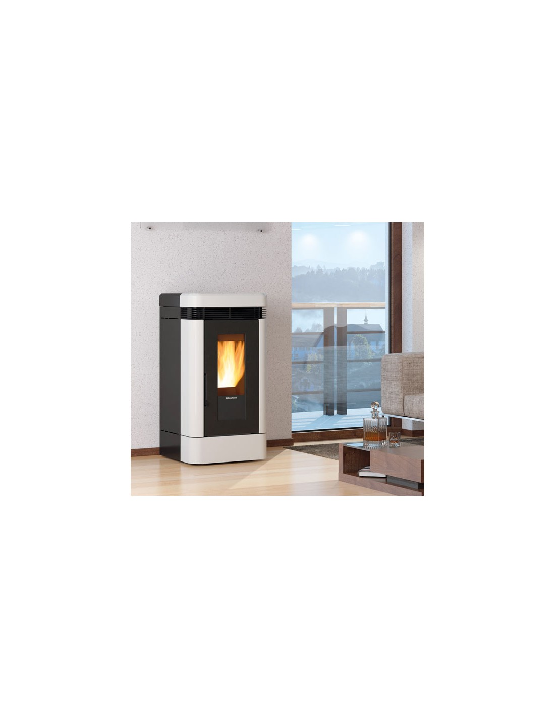 Stufa a pellet canalizzata con rivestimento in maiolica.