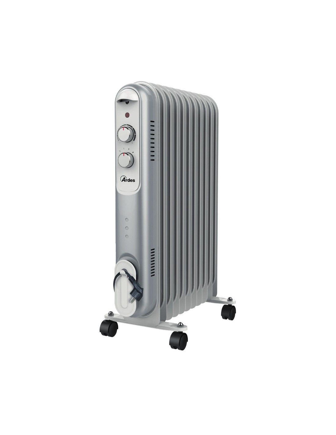Ardes Curvy 11. Tipo: Stufetta a olio, Tipologia elemento riscaldante: Olio, Codice di protezione internazionale (IP): IPX0D. Adatto per: Interno, Opzioni di posizionamento: Pavimento, Colore del prodotto: Nero, Grigio, Bianco. Potenza termica: 2500 W, Potenza termica (min): 1000 W, Adatto per stanze fino a: 75 m³. Potenza: 2500 W, Tensione di ingresso AC: 220 - 240 V, Frequenza di ingresso AC: 50 - 60 Hz. Larghezza: 480 mm, Profondità: 240 mm, Altezza: 625 mm