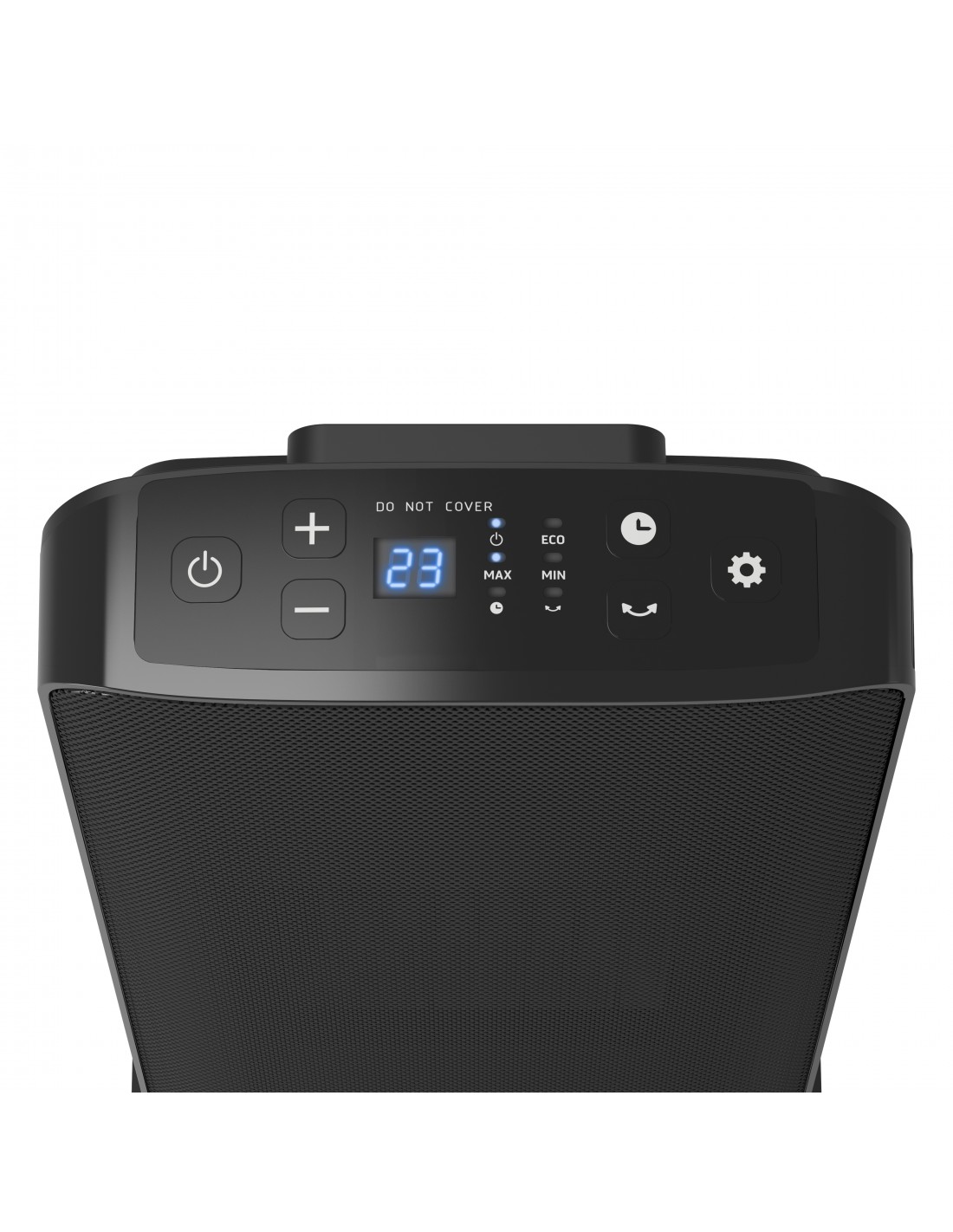 Pannello di controllo digitale per regolare potenza, termostato ambiente e timer integrato.