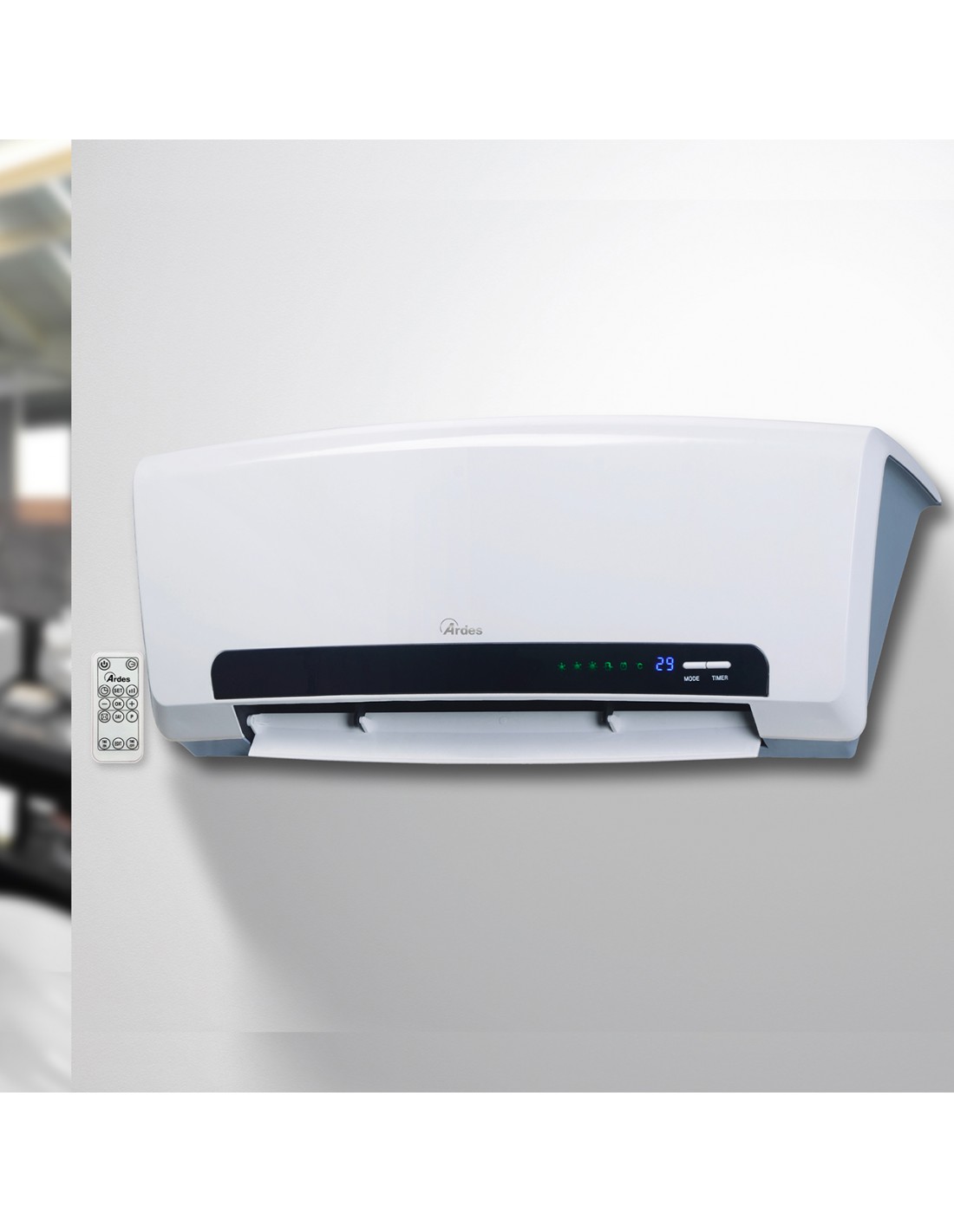 Termoventilatore ceramico. 2 livelli di potenza: eco e comfort. Ventilazione estiva. Telecomando. Timer 12 ore per accensione o spegnimento. Programmazione settimanale. Ceramico: sicuro ed efficiente. Display LED con indicazione della temperatura. Ideale per l?utilizzo in bagno, protetto dalla caduta di gocce d?acqua sia verticali che oblique (IP22, fino a 15ø). Oscillazione automatica. Sistema di protezione anti surriscaldamento.