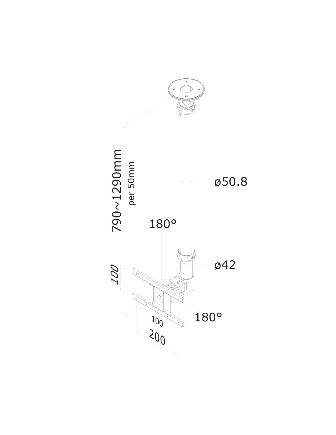 Utilizzate un montaggio a soffitto per sfruttare pienamente le capacità del vostro schermo. Il montaggio è facile da regolare in altezza. È inoltre possibile inclinare lo schermo in senso verticale, orizzontale e farlo ruotare, questo crea l'angolo di visione ideale. I cavi sono tenuti fuori dalla vista attraverso la predisposizione di passaggio all’interno della colonna.