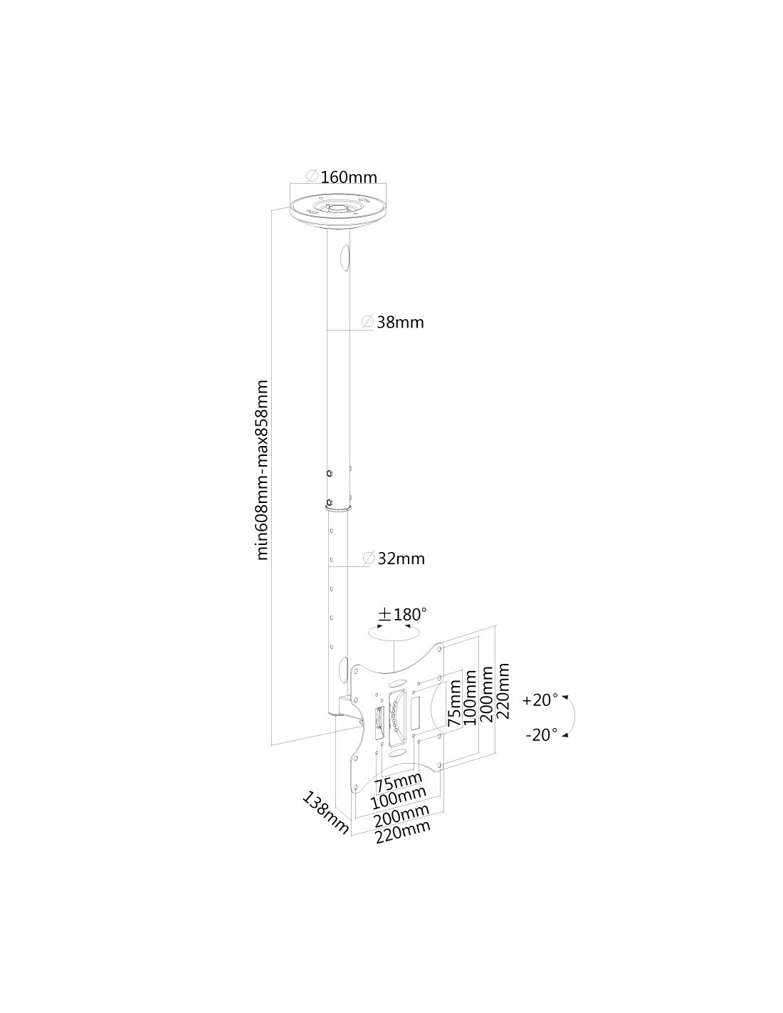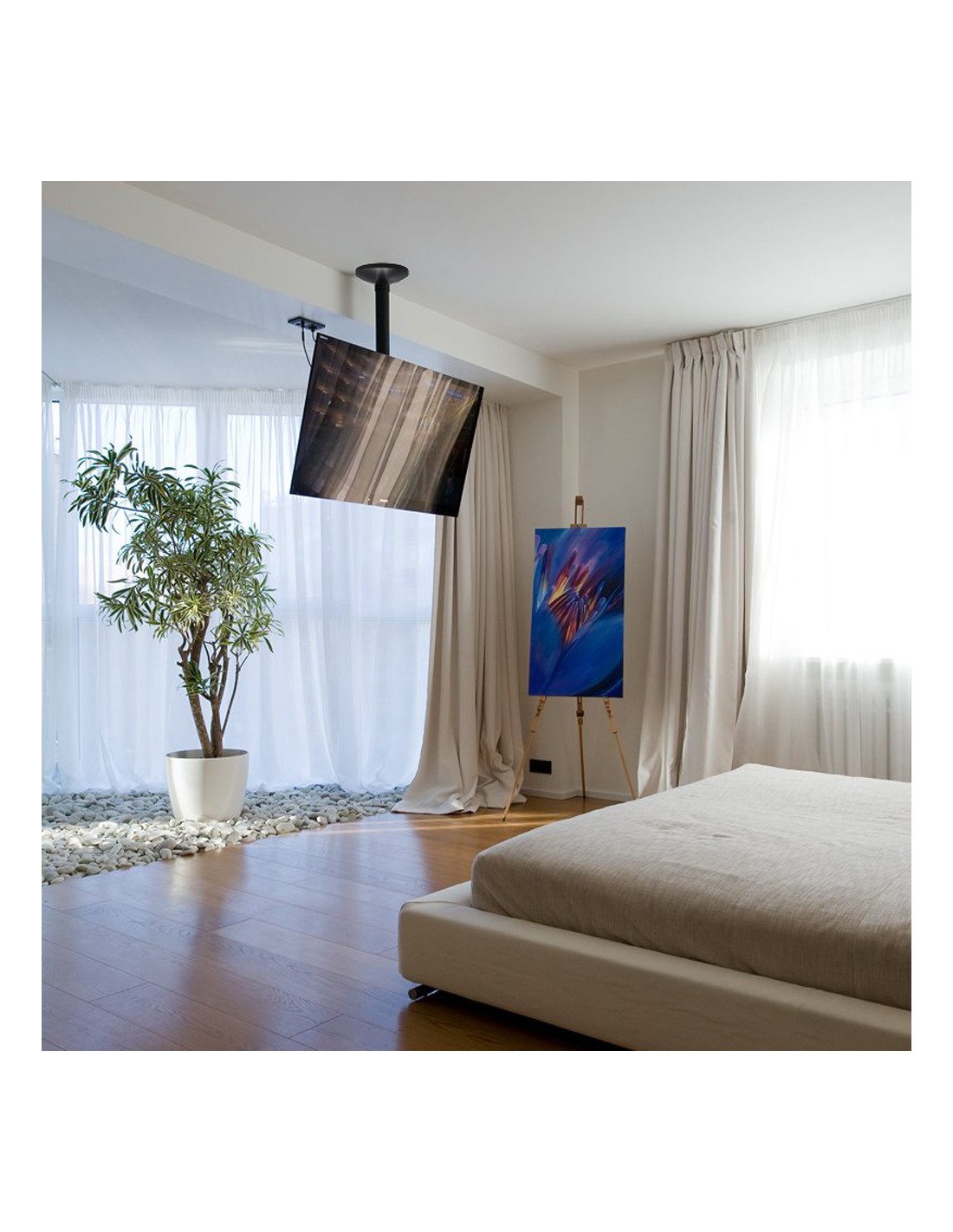 Utilizzate un montaggio a soffitto per sfruttare pienamente le capacità del vostro schermo. Il montaggio è facile da regolare in altezza. È inoltre possibile inclinare lo schermo in senso verticale e orizzontale, questo crea l'angolo di visione ideale. I cavi sono tenuti fuori dalla vista attraverso la predisposizione di passaggio all’interno della colonna.