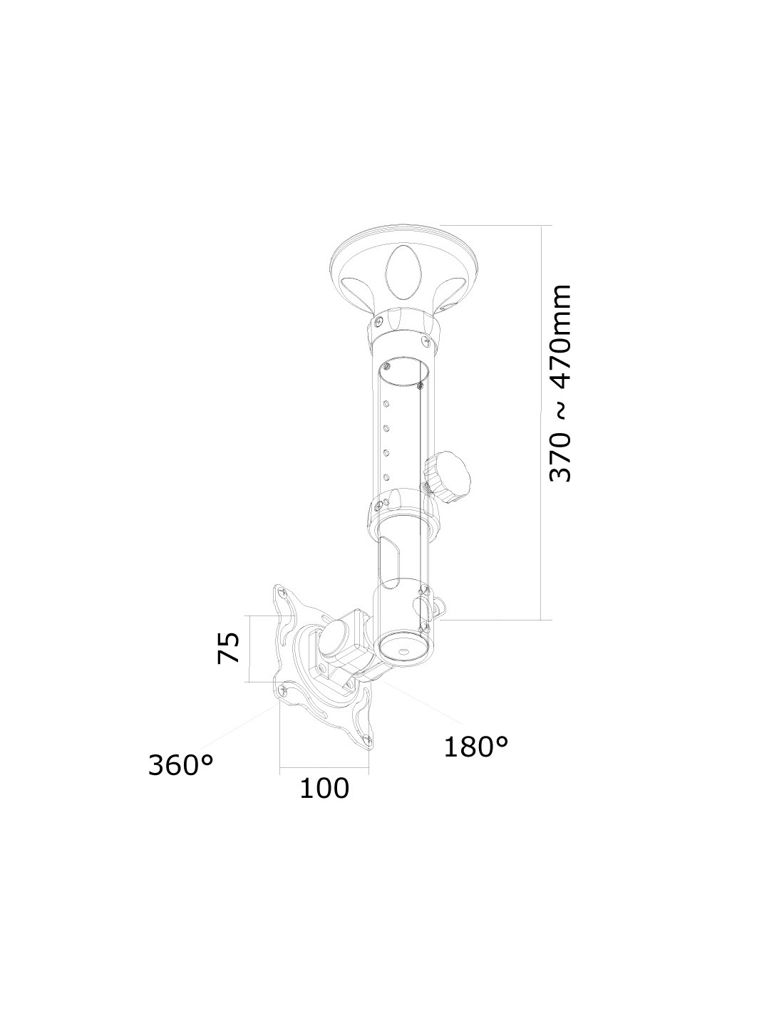 Utilizzate un montaggio a soffitto per sfruttare pienamente le capacità del vostro schermo. Il montaggio è facile da regolare in altezza. È inoltre possibile inclinare lo schermo in senso verticale e farlo ruotare, questo crea l'angolo di visione ideale. I cavi sono tenuti fuori dalla vista attraverso la predisposizione di passaggio all’interno della colonna.
