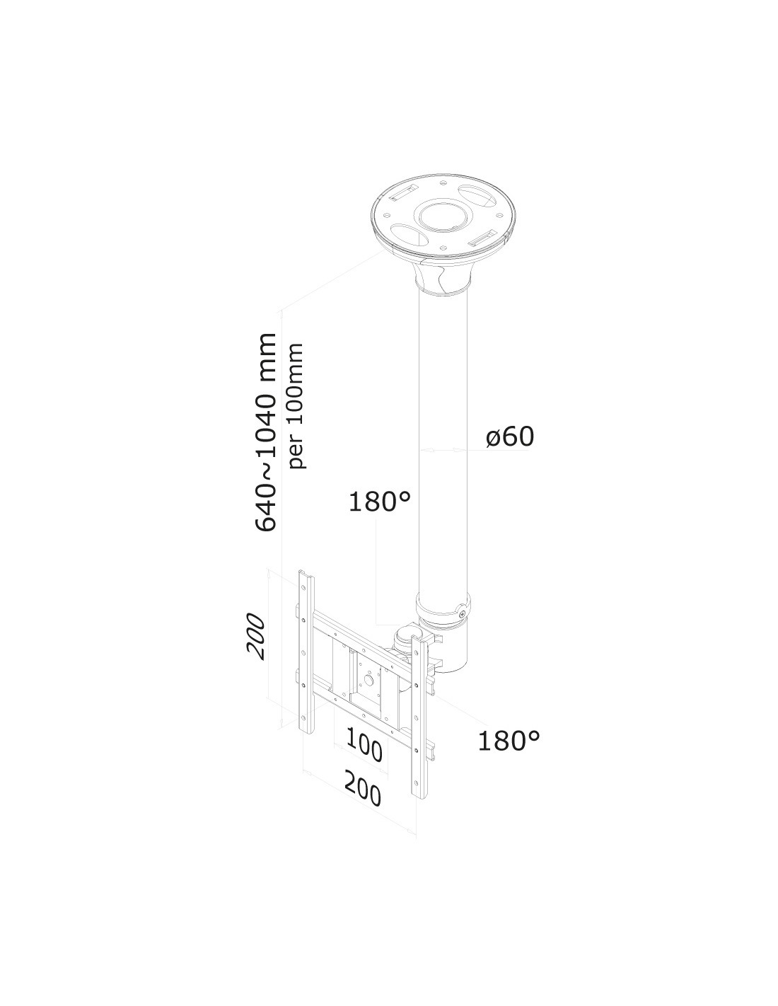 Utilizzate un montaggio a soffitto per sfruttare pienamente le capacità del vostro schermo. Il montaggio è facile da regolare in altezza. È inoltre possibile inclinare lo schermo in senso verticale, orizzontale e farlo ruotare, questo crea l'angolo di visione ideale. I cavi sono tenuti fuori dalla vista attraverso la predisposizione di passaggio all’interno della colonna.