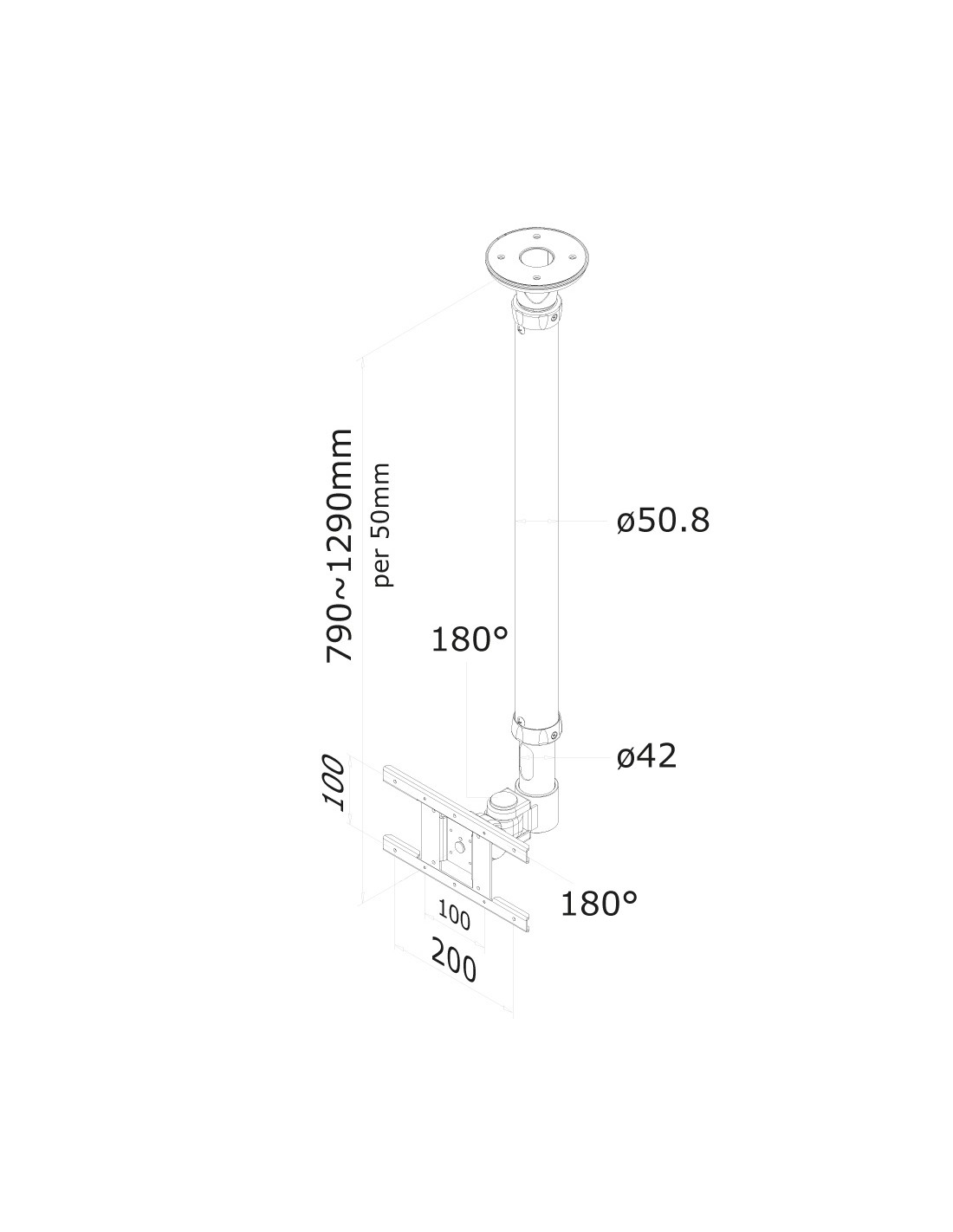Utilizzate un montaggio a soffitto per sfruttare pienamente le capacità del vostro schermo. Il montaggio è facile da regolare in altezza. È inoltre possibile inclinare lo schermo in senso verticale, orizzontale e farlo ruotare, questo crea l'angolo di visione ideale. I cavi sono tenuti fuori dalla vista attraverso la predisposizione di passaggio all’interno della colonna..