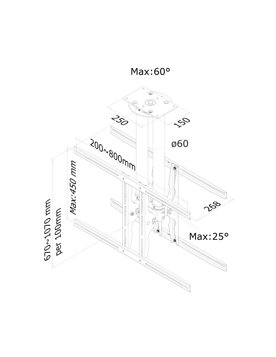 Il supporto FPMA-C100D ha un punto di articolazione ed è adatto a schermi fino a 75" (191 cm) con una capacità massima di trasporto di 100 kg (50 Kg per ogni schermo). Questo prodotto è adatto per schermi con fori VESA da 200x200 fino a 800x450 mm. In ambienti con presenza di controsoffitto è possibile acquistare separatamente due cover cod.