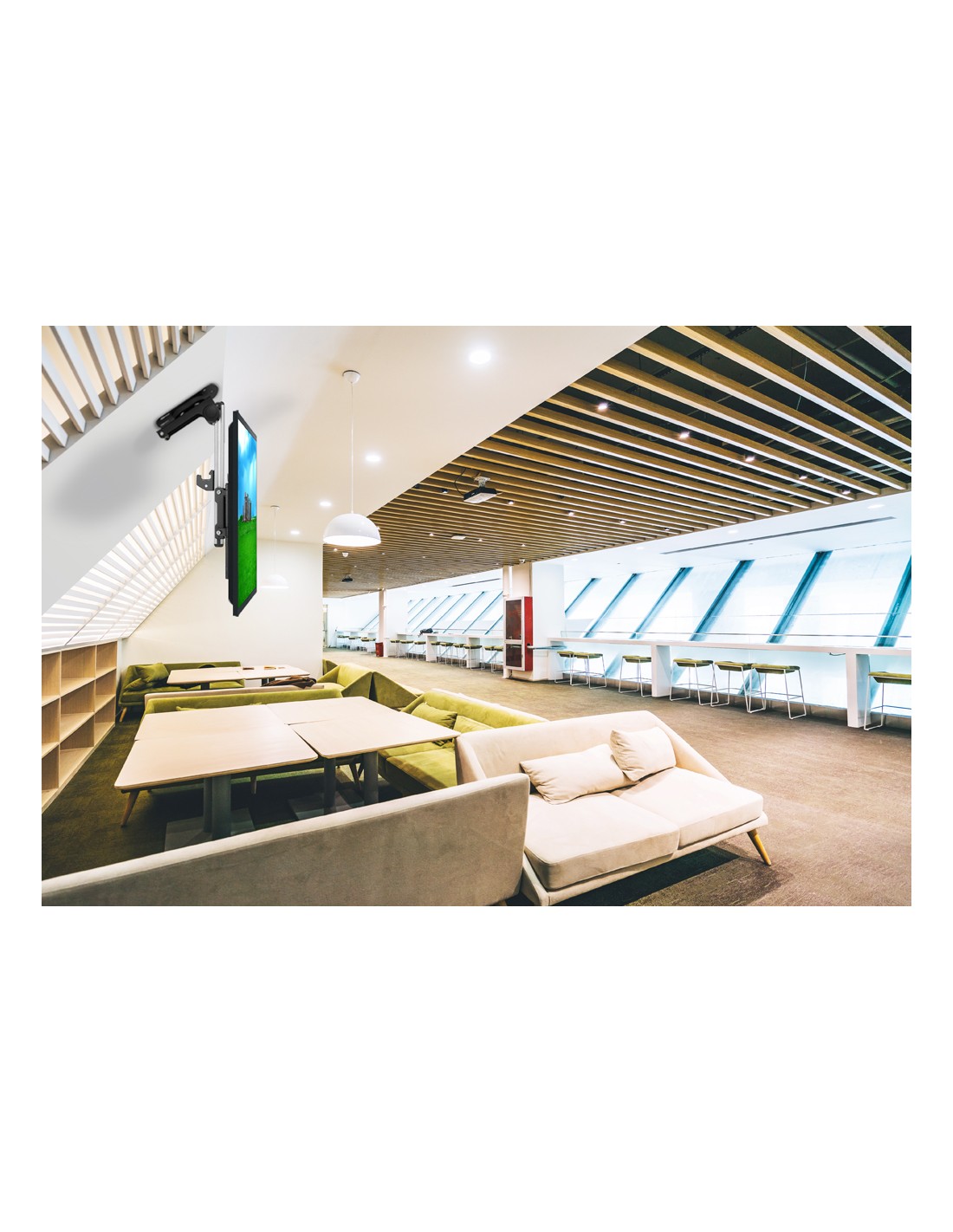 Utilizzate un montaggio a soffitto per sfruttare pienamente le capacità del vostro schermo. Il montaggio è facile da regolare in altezza. È inoltre possibile inclinare lo schermo in senso verticale e farlo ruotare, questo crea l'angolo di visione ideale. I cavi sono tenuti fuori dalla vista attraverso la predisposizione di passaggio all’interno della colonna.