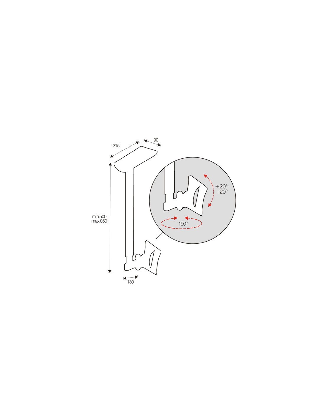 - La distanza minima da soffitto è di 50 cm ed essa può essere aumentata fino a 85 cm. Il supporto può essere regolato di 20° verso il basso e 20° verso l’alto.