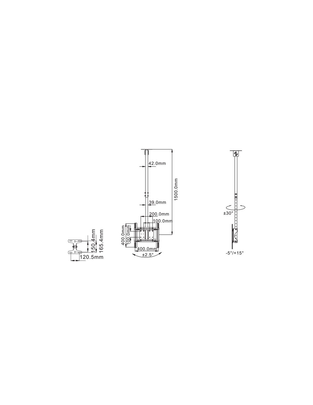 | lunghezza tubo montatura a soffitto (max) | 150 cm |