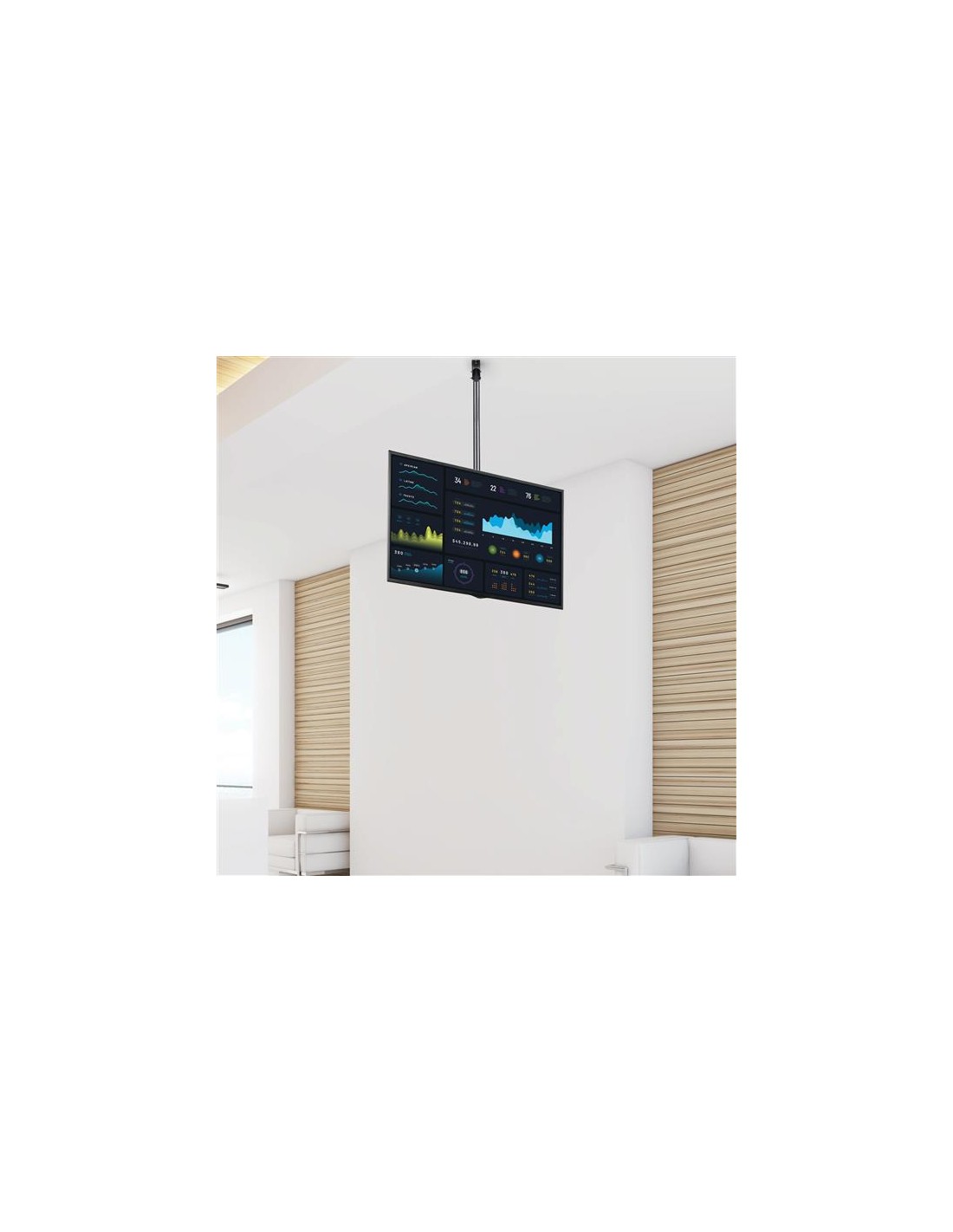Questo supporto da soffitto per televisori compatibili con l'attacco VESA e di dimensioni comprese tra 32" a 75" è in grado di sostenere fino a 50 kg di peso. Senza occupare spazio su una parete o sul pavimento, consente di appendere al soffitto e ben in vista un televisore al plasma, LED o LCD a schermo piatto.