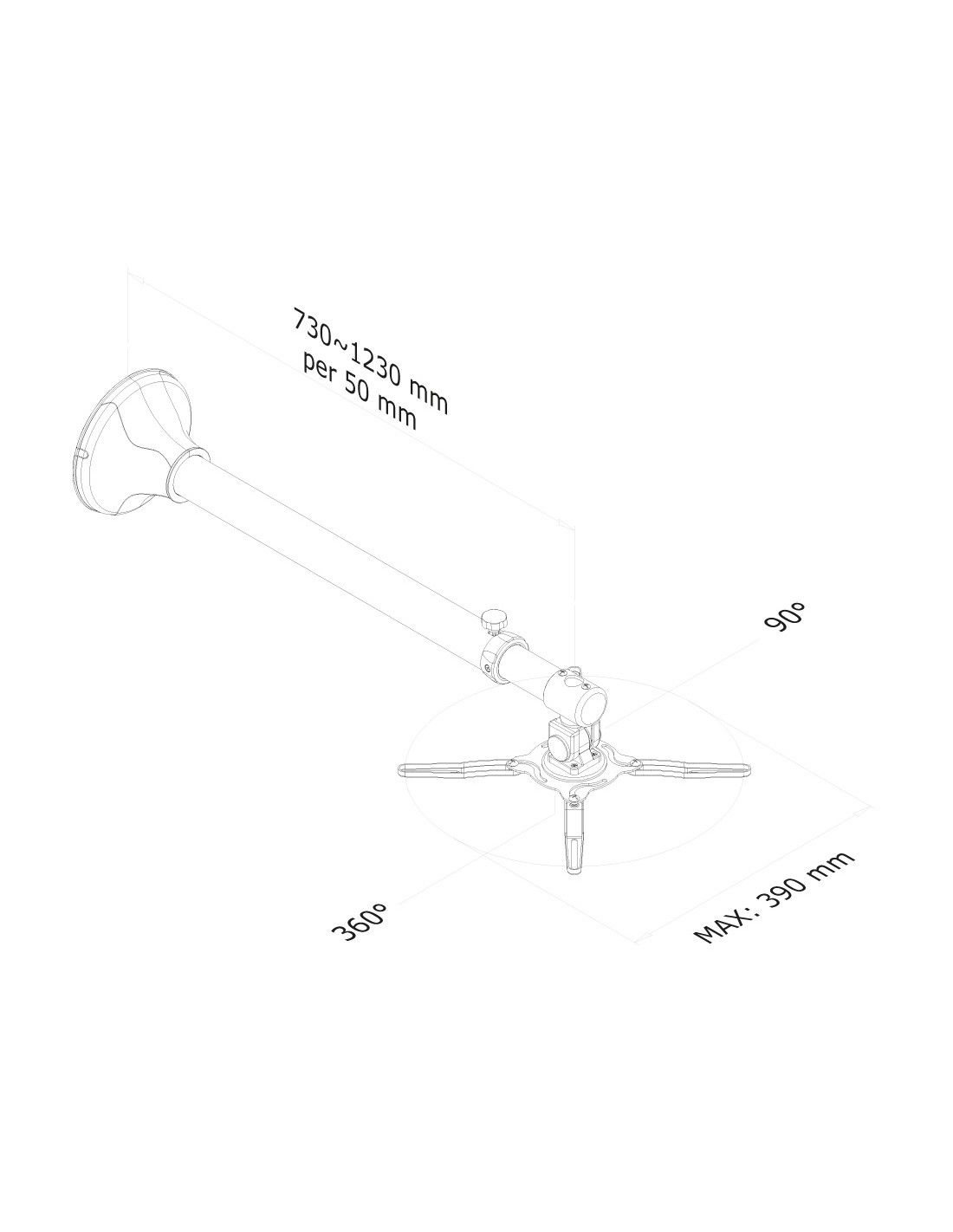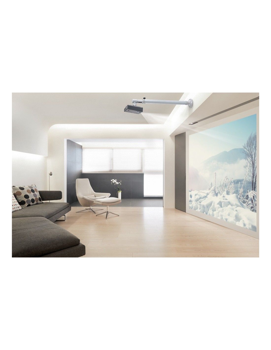 Utilizzate un montaggio a parete per sfruttare pienamente le capacità del vostro videoproiettore. Il supporto è facilmente regolabile in profondità, 73-123 cm, consente inoltre l’inclinazione in senso verticale, orizzontale e la rotazione. Con questo supporto si può facilmente determinare la posizione ideale.